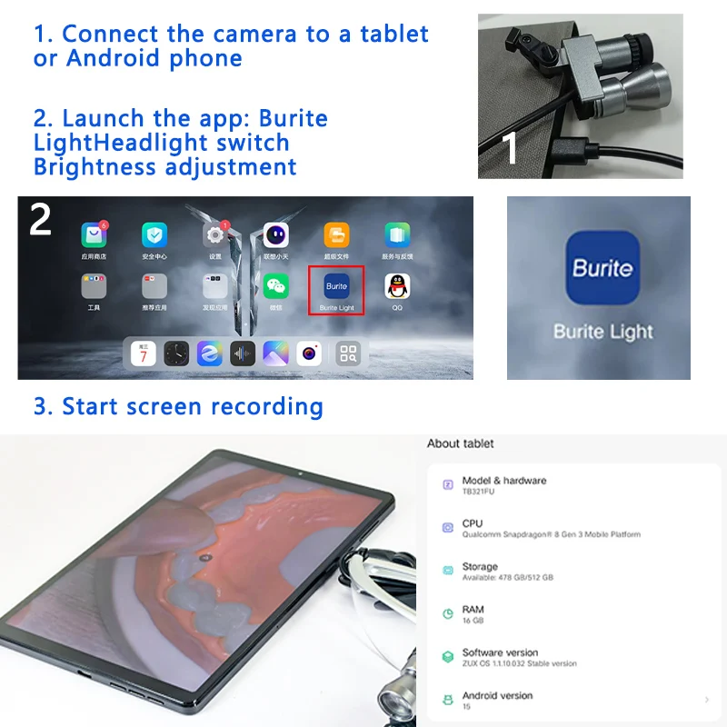 医療教育および手術記録用の Burite HD 2K カメラシステム、画面ミラーリング、歯科医師向け - TopDealBox