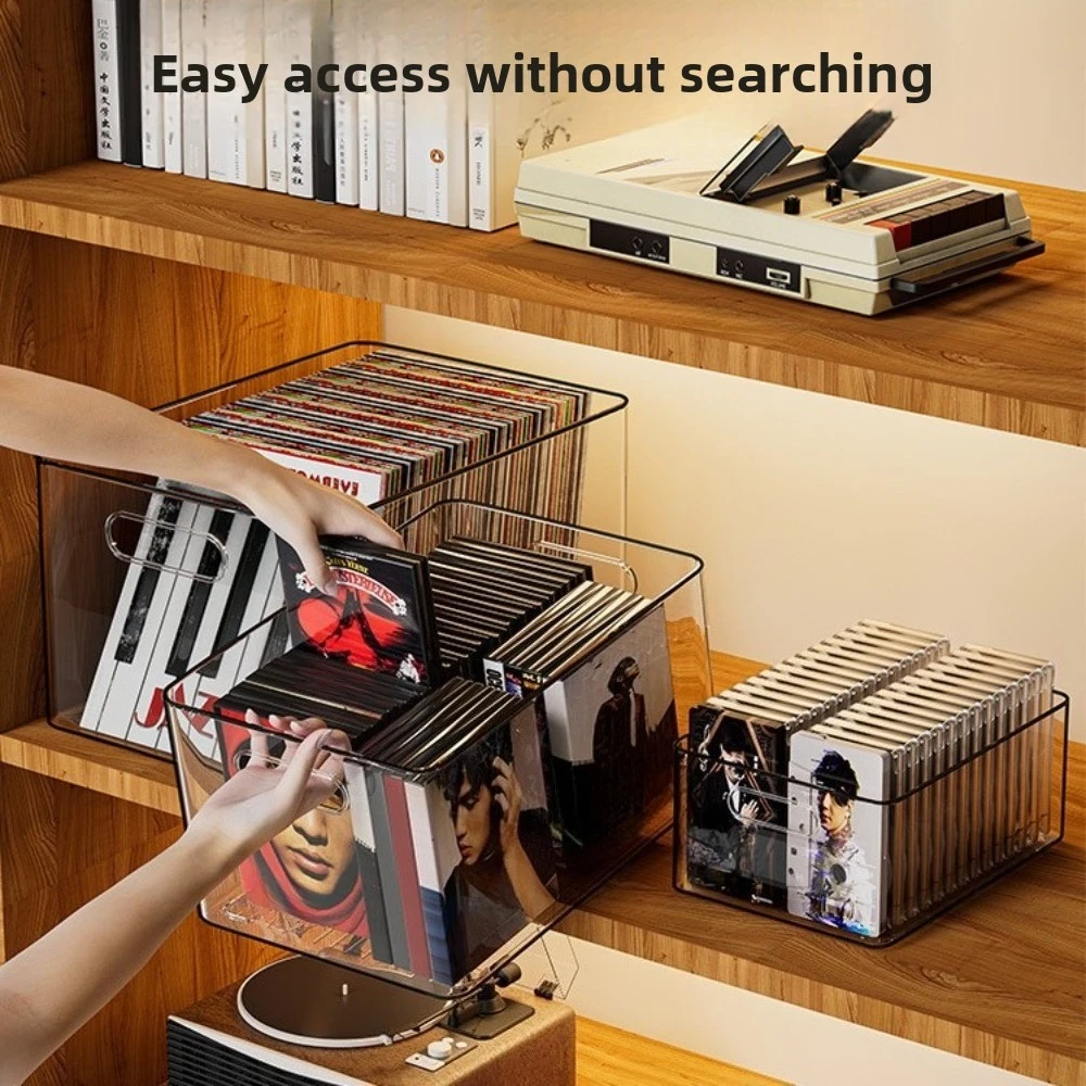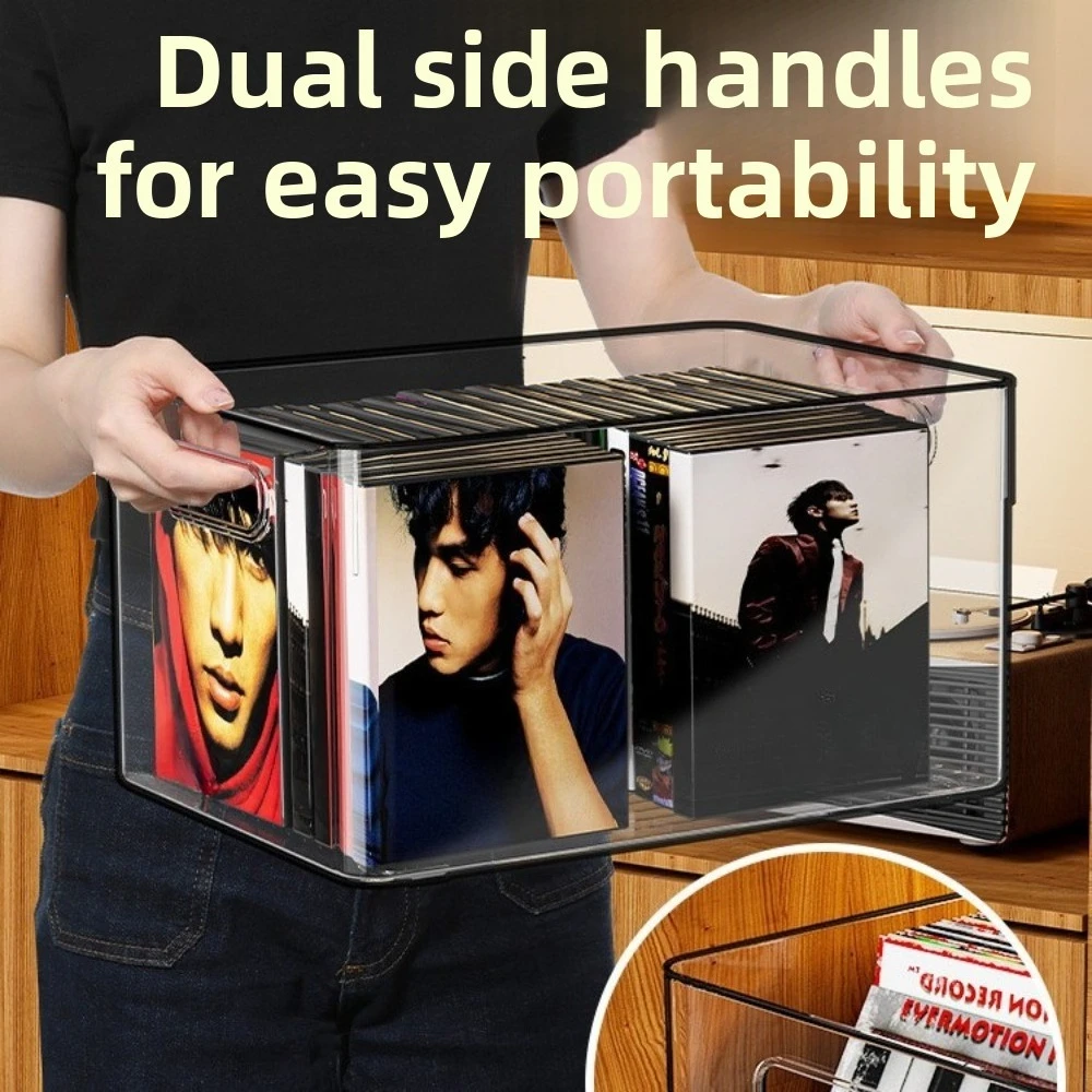 透明アクリルCD DVD収納ケース、防塵ビニールレコードアルバムディスプレイラック、勉強部屋とリビングルーム用のテープコレクションボックス - TopDealBox