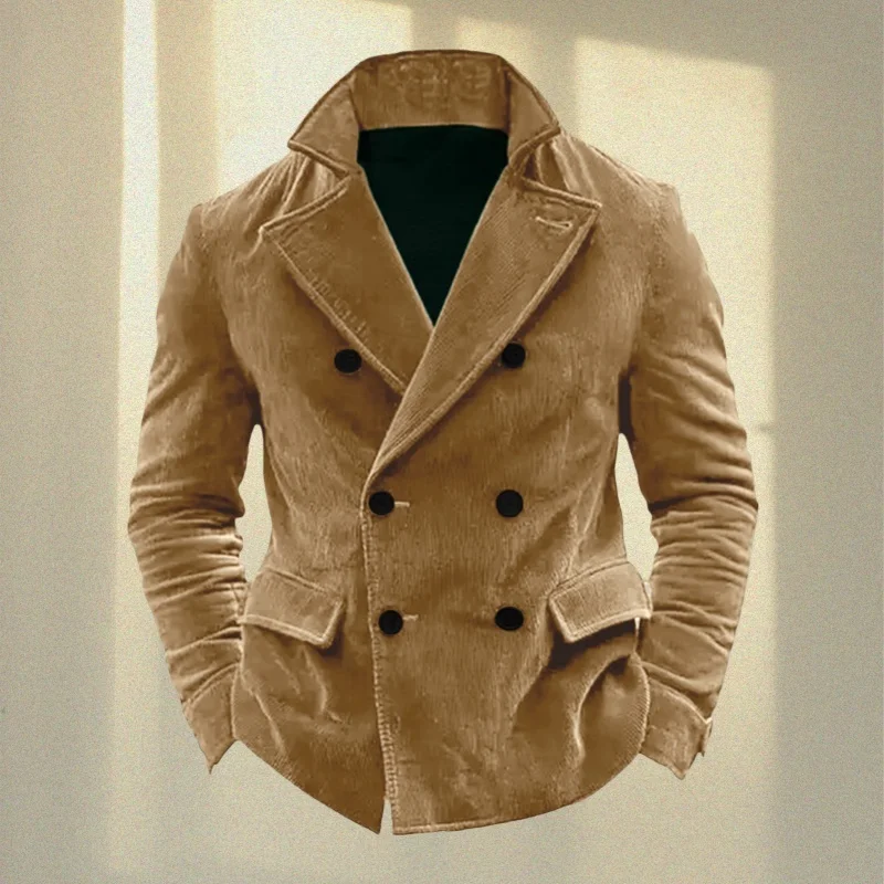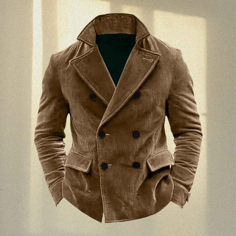 コーデュロイ メンズ スーツ ジャケット スタンドカラー ダブルブレスト メンズ ビジネス カジュアル アウター シワになりにくい ヴィンテージ ウェディング スーツ - TopDealBox