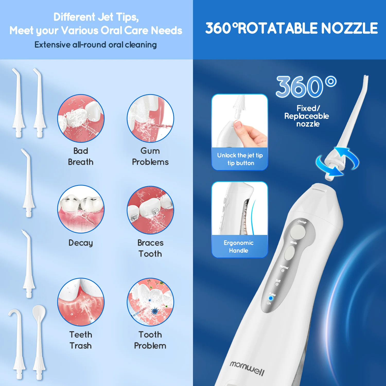 D52 ポータブルコードレスウォーターフロッサー USB充電式 ウォータージェットフロス 歯間洗浄器 4種類のジェットチップ 300ml 3モード 旅行用歯磨き - TopDealBox