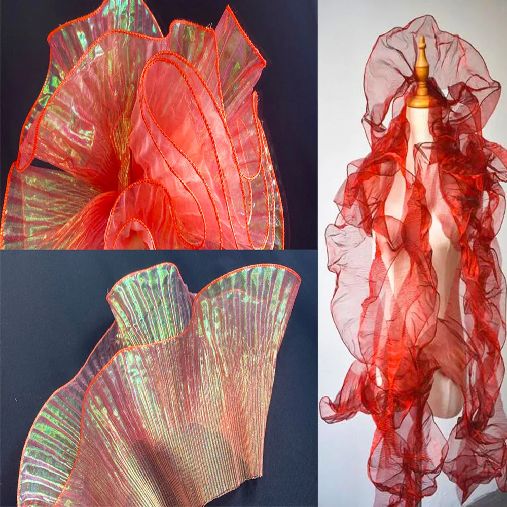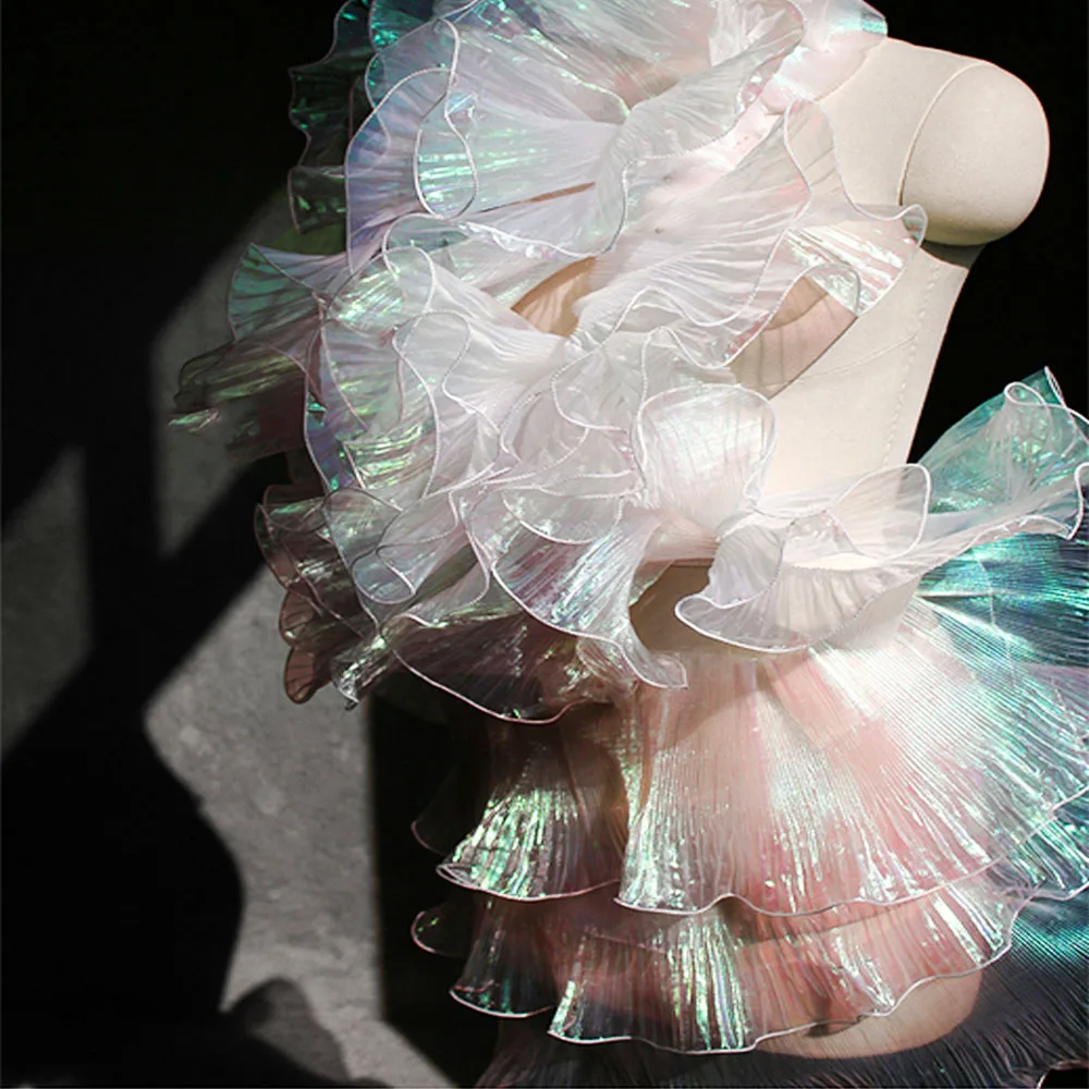 光沢のあるプリーツレースフリル生地しわのないトリム DIY 縫製イブニングドレス家の装飾カーテンクラフトパッチワーク供給 - TopDealBox