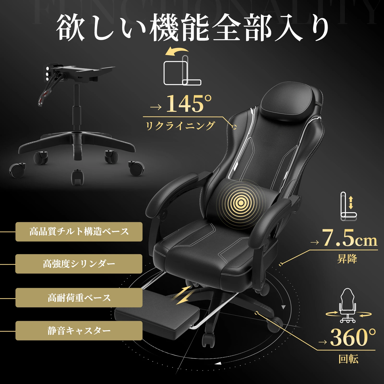 ♡Quick view【SYMINO】フットレスト付きゲーミングチェア|ゲーマー向けエルゴノミックコンピュータチェア、調節可能なスイベルタスクチェア(腰椎サポート付き)、フェイクレザー製、金属フレーム13451 JPYHot★★★★★★4.9