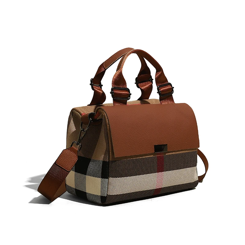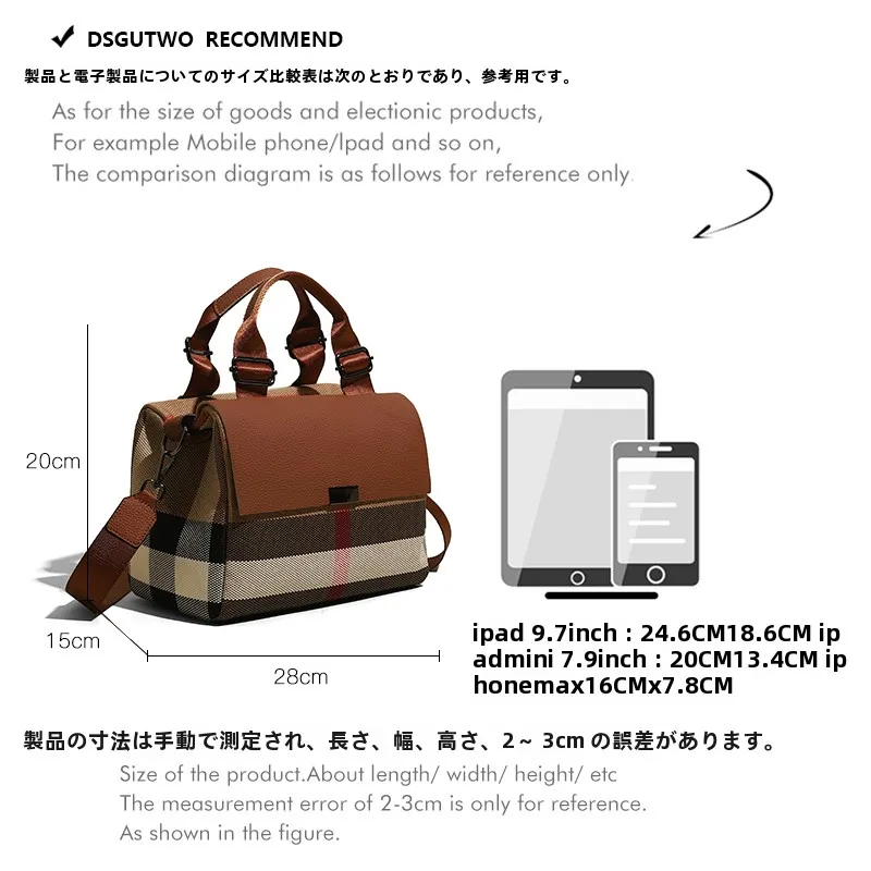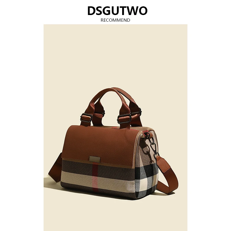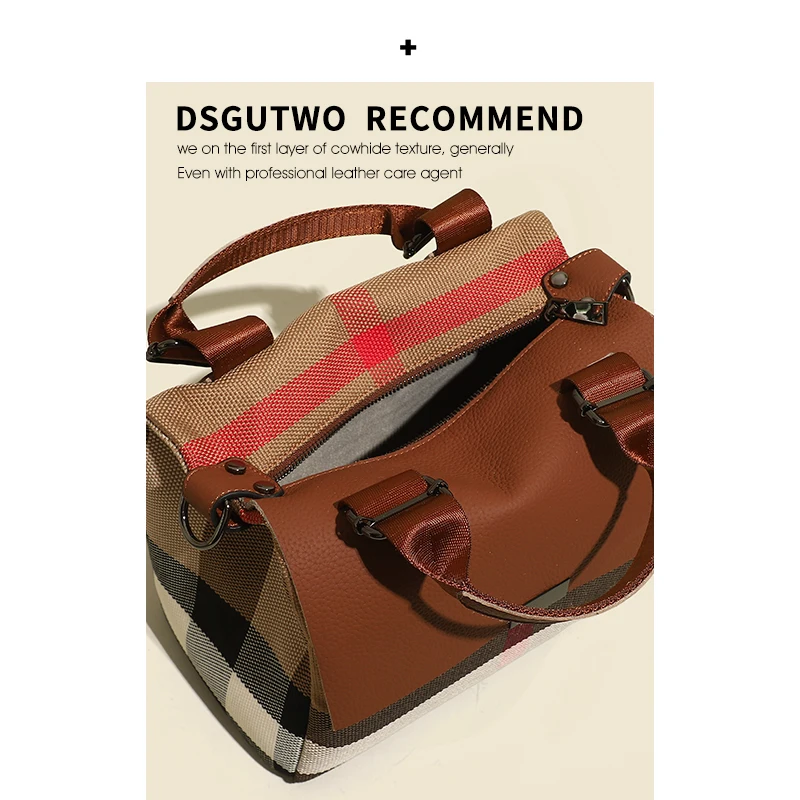DSGUTWO ファッション大容量本革レディースバッグトレンディ 2024 新しいチェック柄牛革トートバッグ秋シーズン革グッズ - TopDealBox