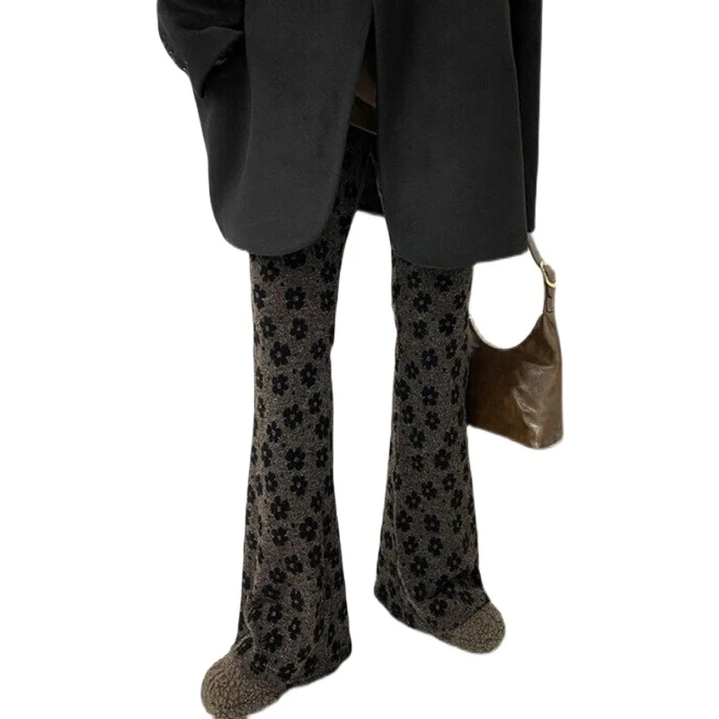 East Gate 2025 秋冬新スタイルレトロプリント小花タイトな弾性ウエストフレアパンツ女性カジュアル長ズボン - TopDealBox