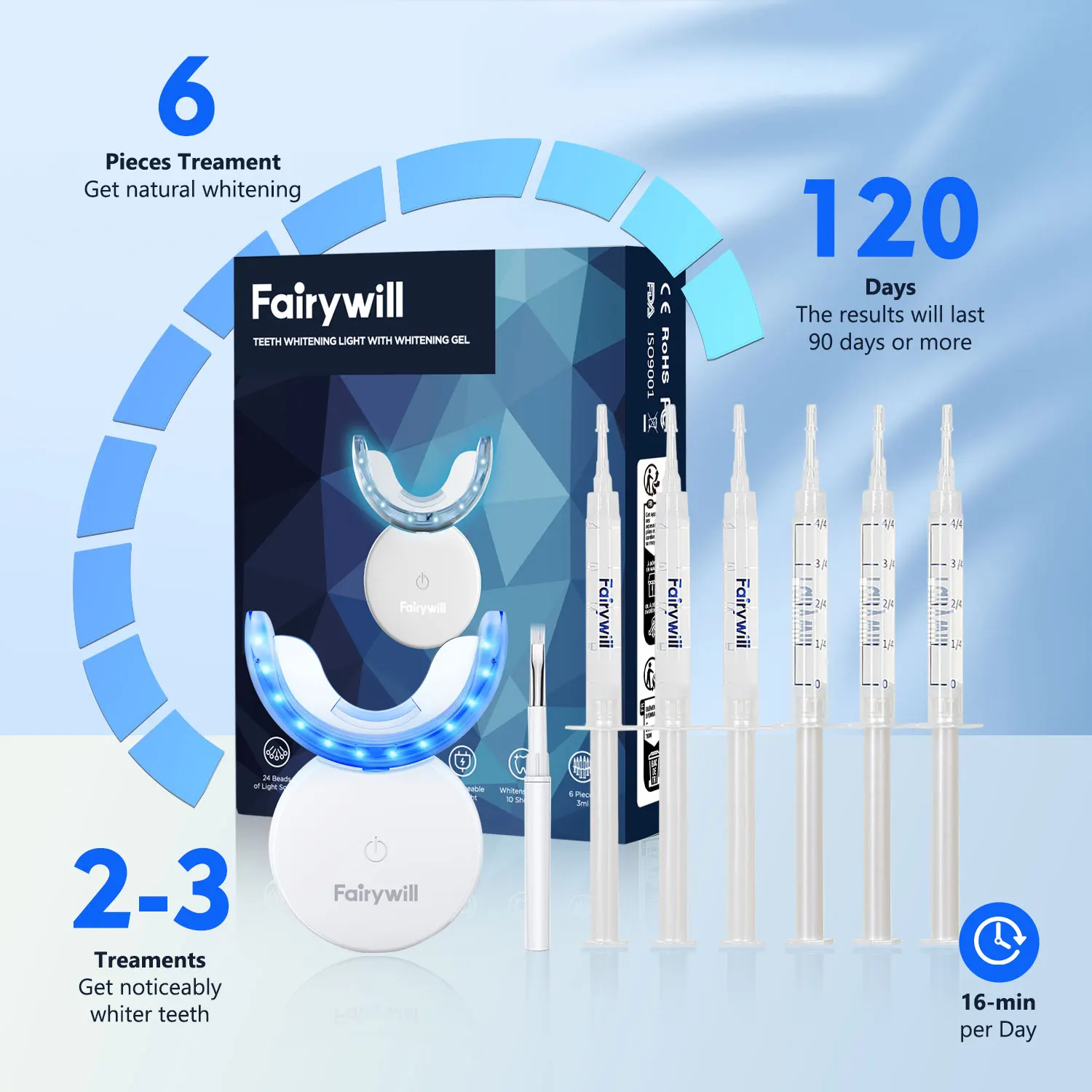 Fairywill 歯ホワイトニングキット LED ライト W/22% 歯ホワイトニングライト 6 カルバミド過酸化物歯ホワイトニングジェル敏感な歯用 - TopDealBox