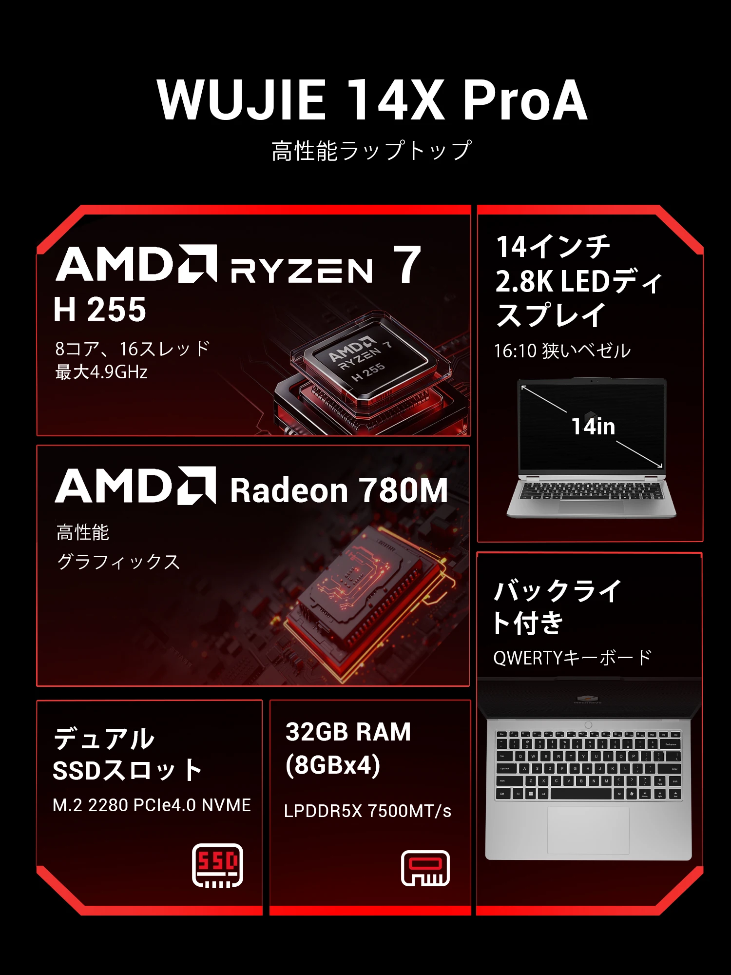 ↑FIREBAT WUJIE 14X Pro 14インチノートパソコン AMD Ryzen 7 H 255 LPDDR5X 32GB RAM M.2 PCIe4 1TB SSD WiFi6 BT5.2 14インチ 2.8K 120Hz Windows11搭載 - TopDealBoxChuwi-Mini Book xラップトップ,2 in 1, Intel n100,n5100,10.51インチ,fhd,ips画面,12gb,lpddr5,512g ssd,Windows 11ノートブック,1200x1920 Firebat-軽量ビジネスコンピューター,a16ラップトップ,16インチcpu,n5095,n100,16GB RAM,ssd,512GB, 1テラバイト,bt4.2,wif5,lpddr4