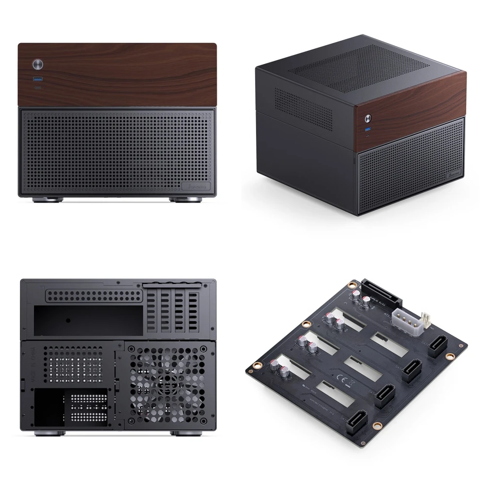 JONSBO-N4ブラックnasシャーシM-ATXマザーボード、sfx電源スロット、6つの大きな2つの小さなハードドライブスロット、120x1ファン、ウォールナット装飾パネル - TopDealBox