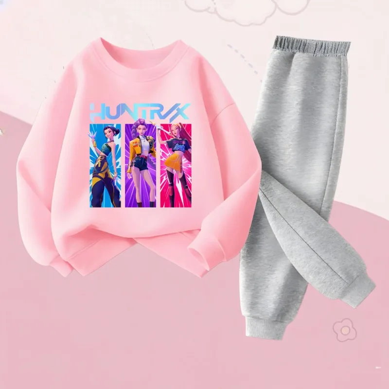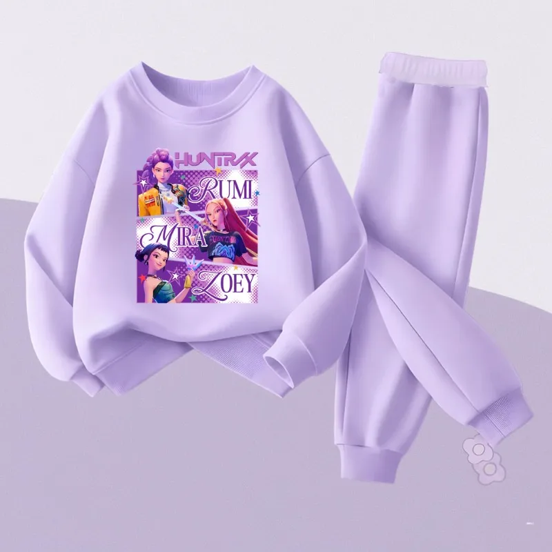 K-POP漫画プリント春秋女の子 O ネックパーカーセット子供スウェットシャツスウェットパンツ 2 個スーツ子供カジュアルプルオーバーセット - TopDealBox