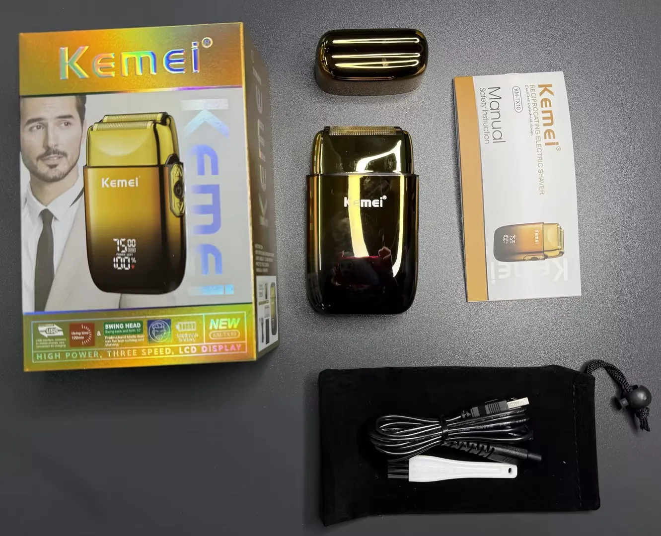 Kemei TX10 新しい電気シェーバー LED 表示画面充電式毛ひげかみそりハゲ頭シェービング男性用 - TopDealBox