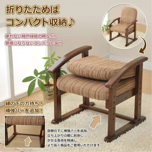 KMZC-55(VS1) ザシキチェア ハイシート(高さ調節/リクライニング/折りたたみ) 完成品 ストライプ/ダークブラウン - TopDealBox