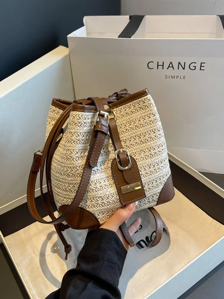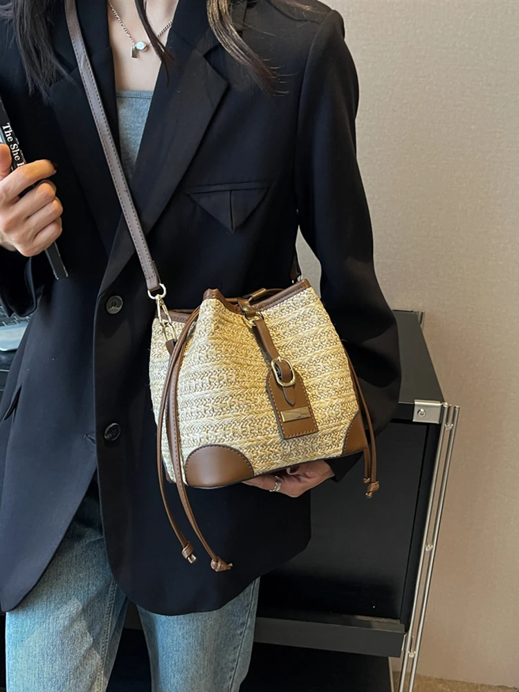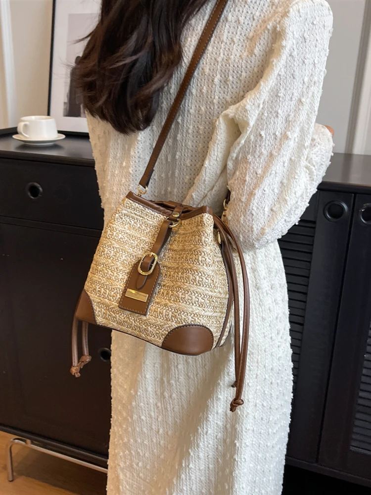 ファッショナブルなカラーブロック織バケットバッグ女性のクロスボディショルダーバッグ KSHH ブランドカジュアルスタイルソフトポリエステル裏地 - TopDealBox