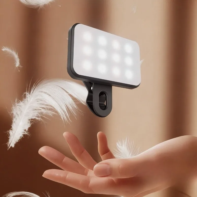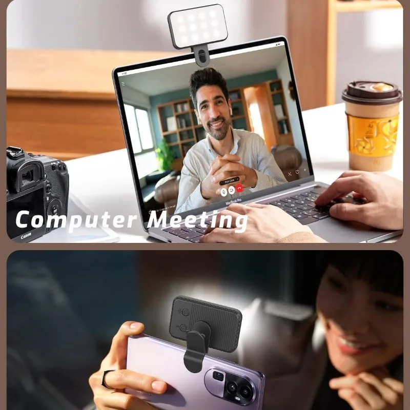 ポータブルミニ自撮りフィルライト、充電式、3モード調整可能、明るさ調整可能、クリップ式、スマホ、ノートパソコン、タブレット、会議、メイクアップ用 - TopDealBox