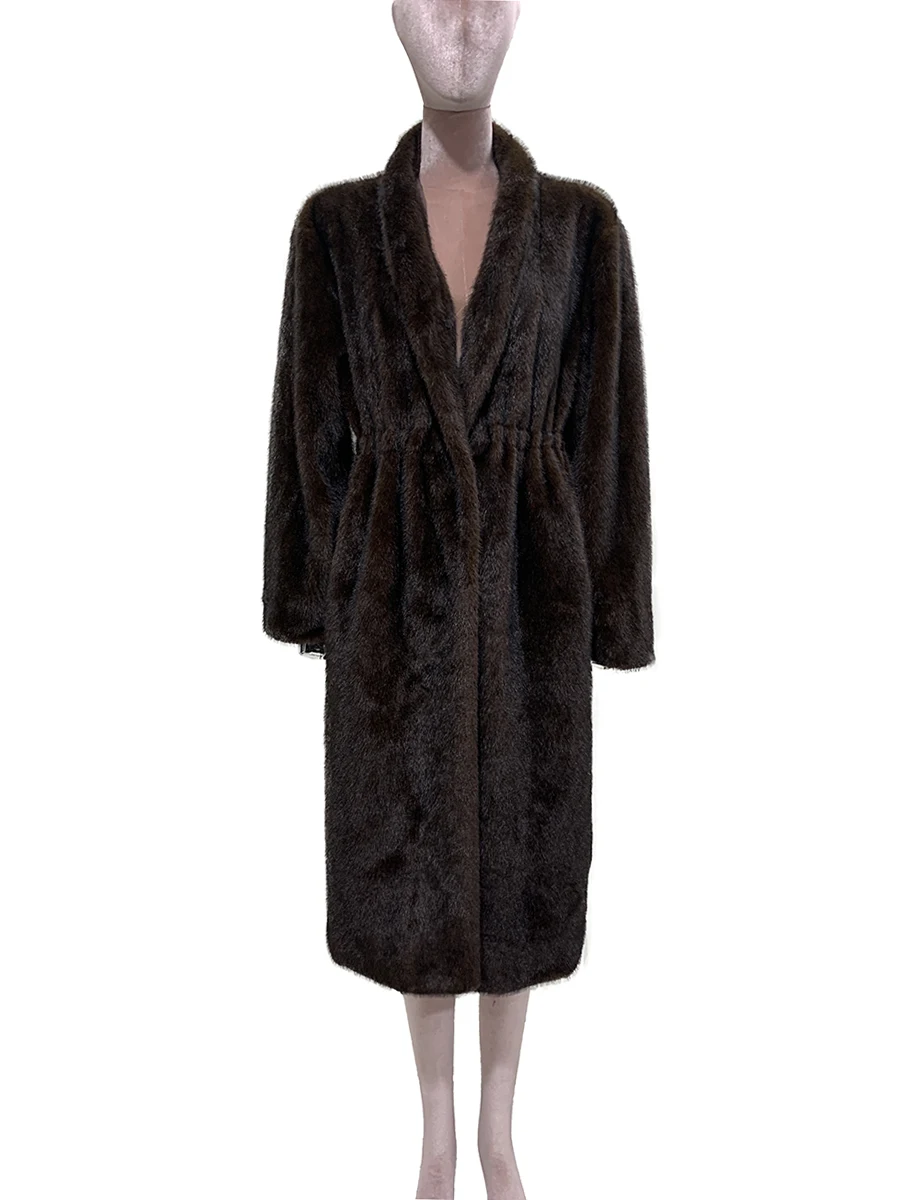 Lautaro 冬ロングブラック高級エレガントスタイリッシュ厚く暖かいふわふわ毛深いソフトフェイクミンクの毛皮のコート女性スタンドカラーサッシ 2023 - TopDealBox