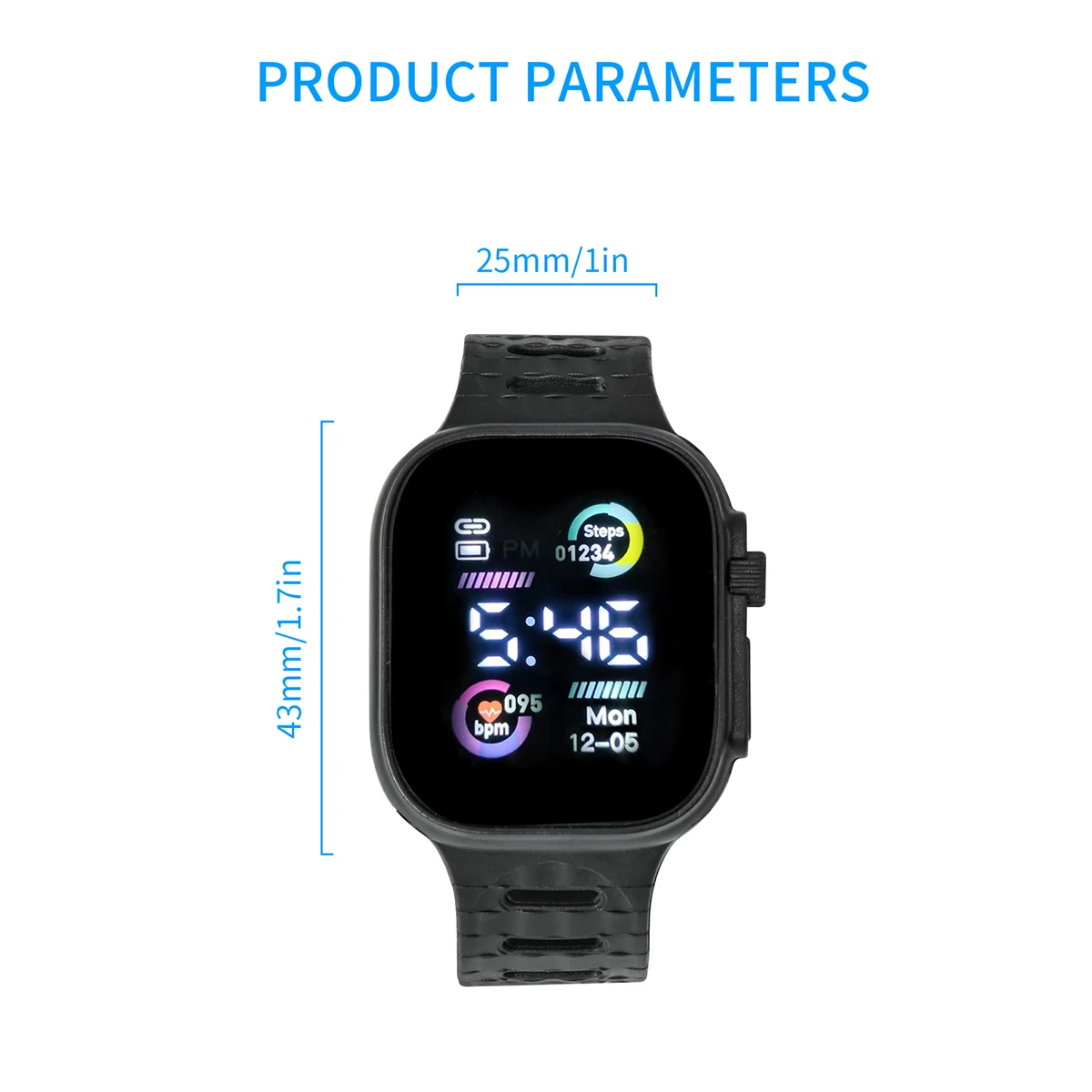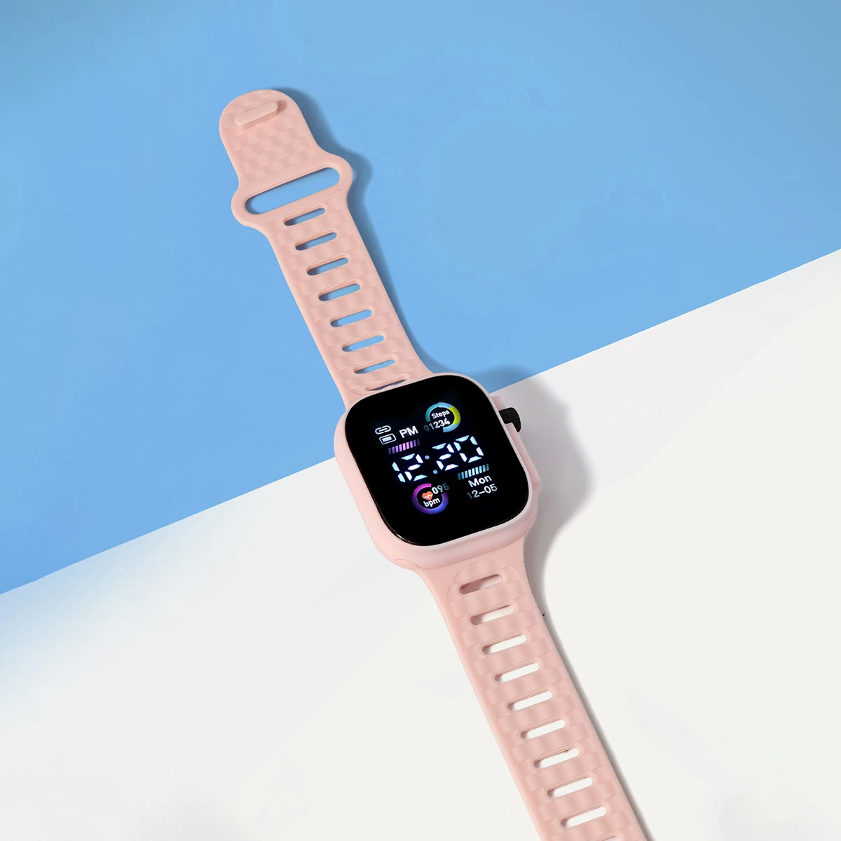 子供の正方形の電子時計、LEDタッチスクリーン、レジャーアウトドアスポーツ、日常生活、休暇の贈り物に適しています - TopDealBox