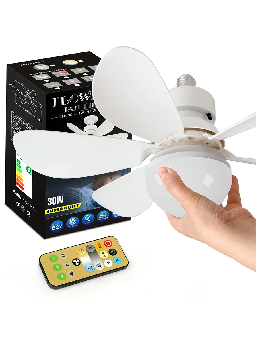 リモート調光機能付き LED 30W シーリングファンライト E27、リビングルーム、書斎、家庭用に最適 - TopDealBox