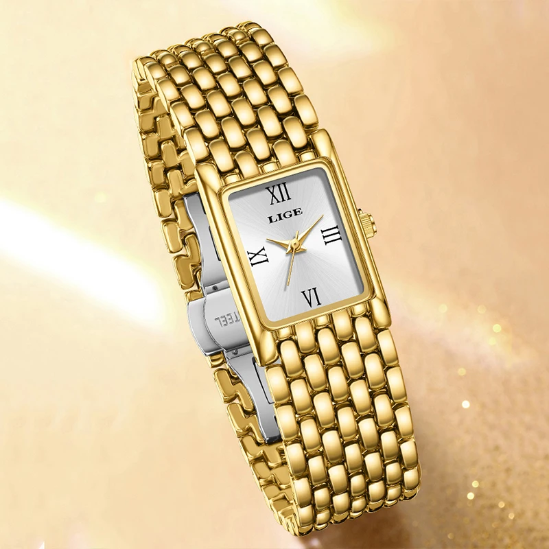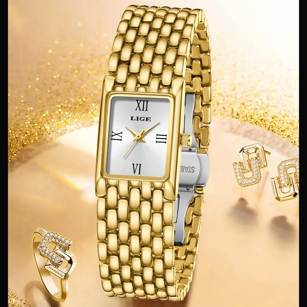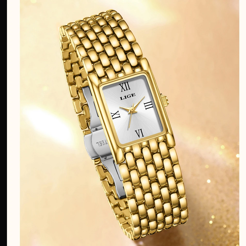 LIGE 高級レディーススクエア腕時計防水ステンレス鋼クォーツ腕時計ファッションクラシックビジネスギフト腕時計女性のための - TopDealBox