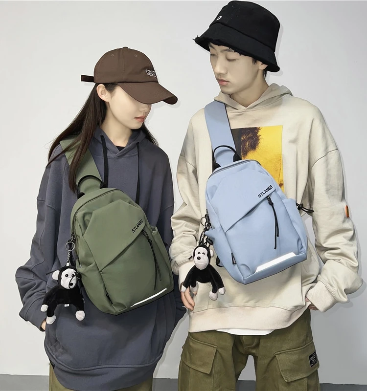 ユニセックスカジュアルキャンバスチェストバッグメンズシングルショルダー斜めクロスバッグスポーティボーイズナイロン生地ジッパー開閉ソフトMサイズ - TopDealBox