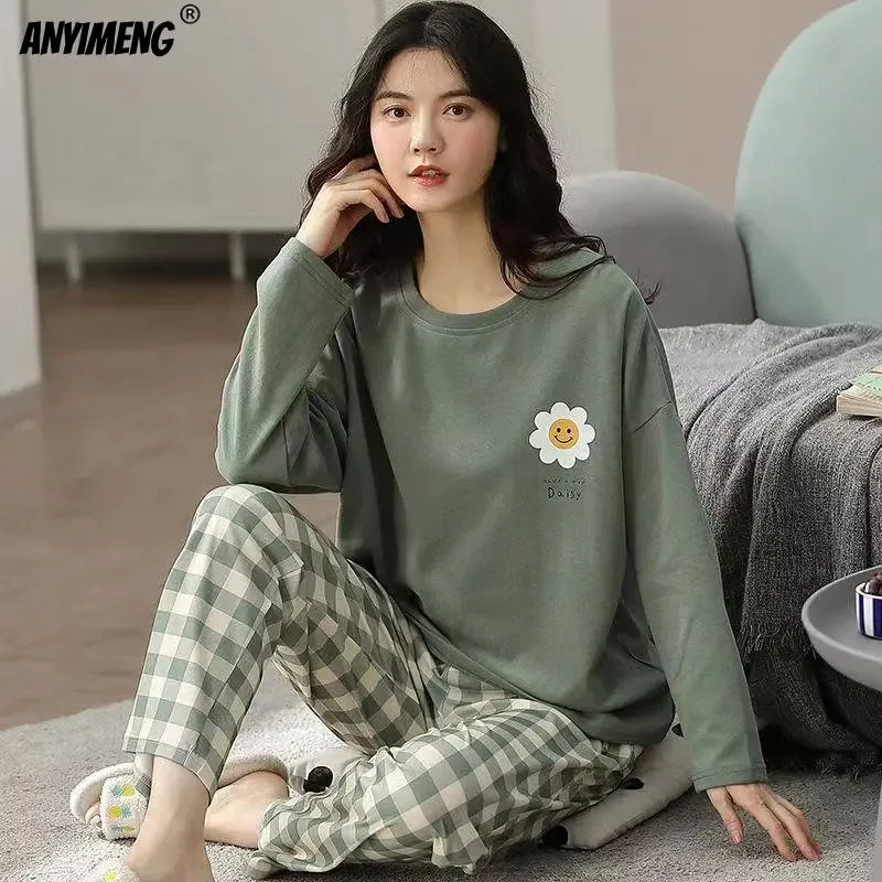M-5XL ビッグサイズ秋春パジャマセット女性のためのかわいい印刷パジャマ女の子のファッション長袖 O ネック女性のパジャマ