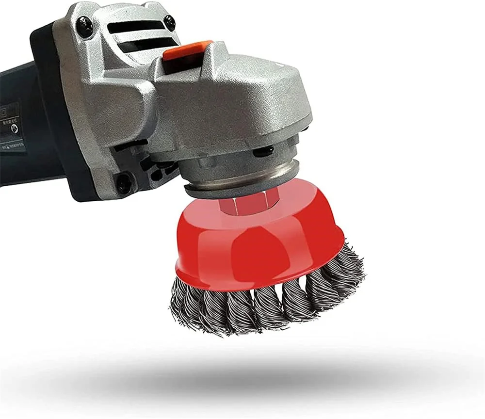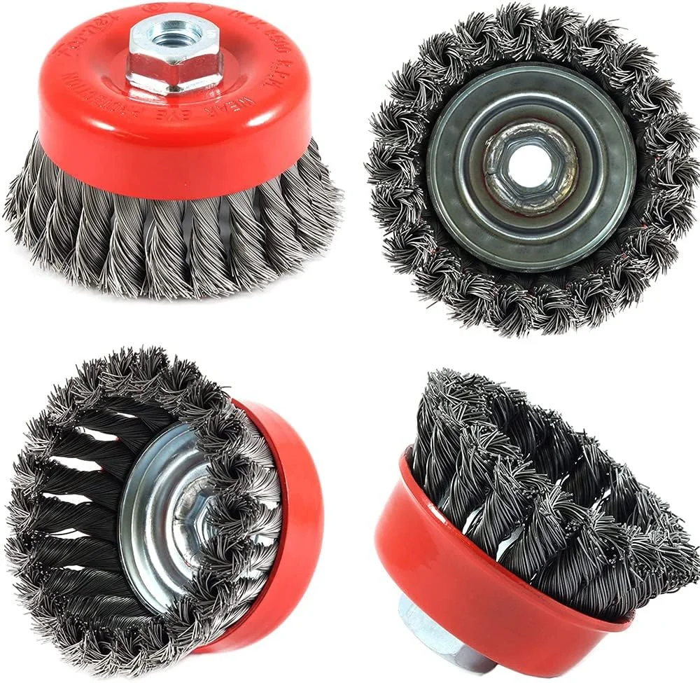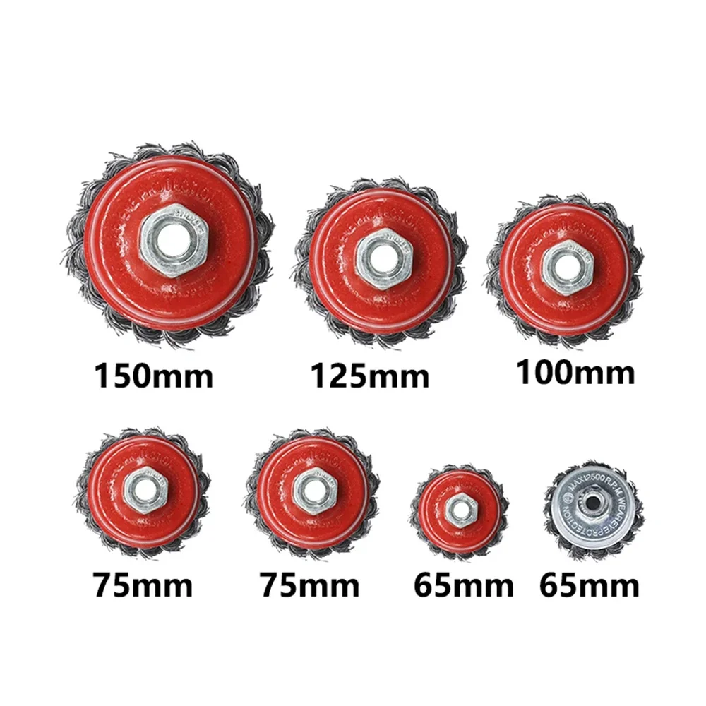 金属アングルグラインダー用ツイストスチールワイヤーホイール、強力な塗装、ロータリーツイストノットの取り外し、バリ取り、M10-M14、2.5-6" - TopDealBox
