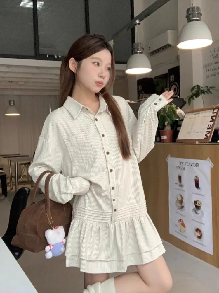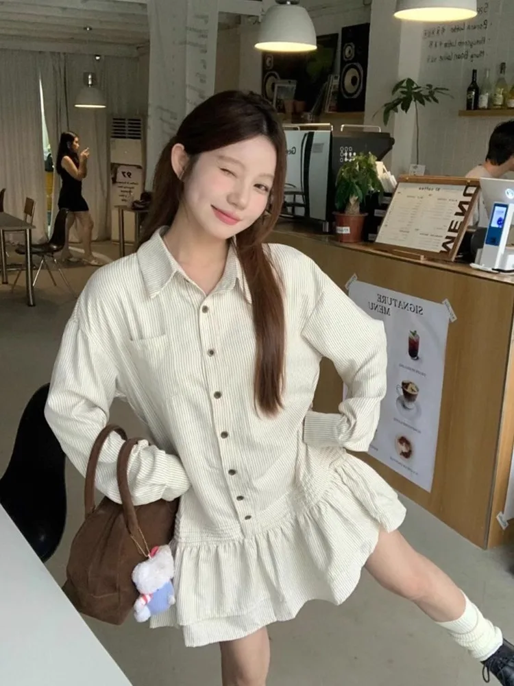 MD-女性用ショートドレス,ストライプのルーズドレス,韓国シリーズ,甘い,小さな子供向け,新しい,初秋 - TopDealBox