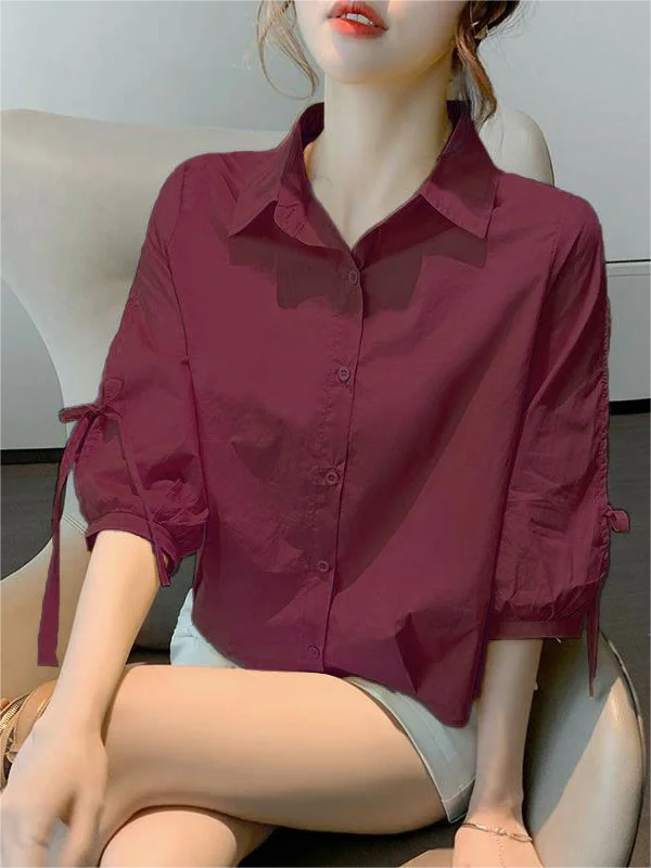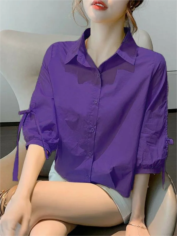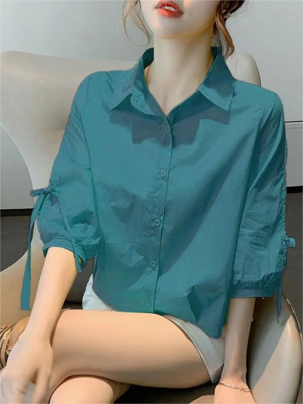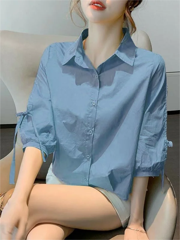 女性のコットンリネンランタンスリーブシャツルーズフィットショートスリーブ通気性のある夏の新しいスタイル韓国語版ファッショナブルなタイN... - TopDealBox
