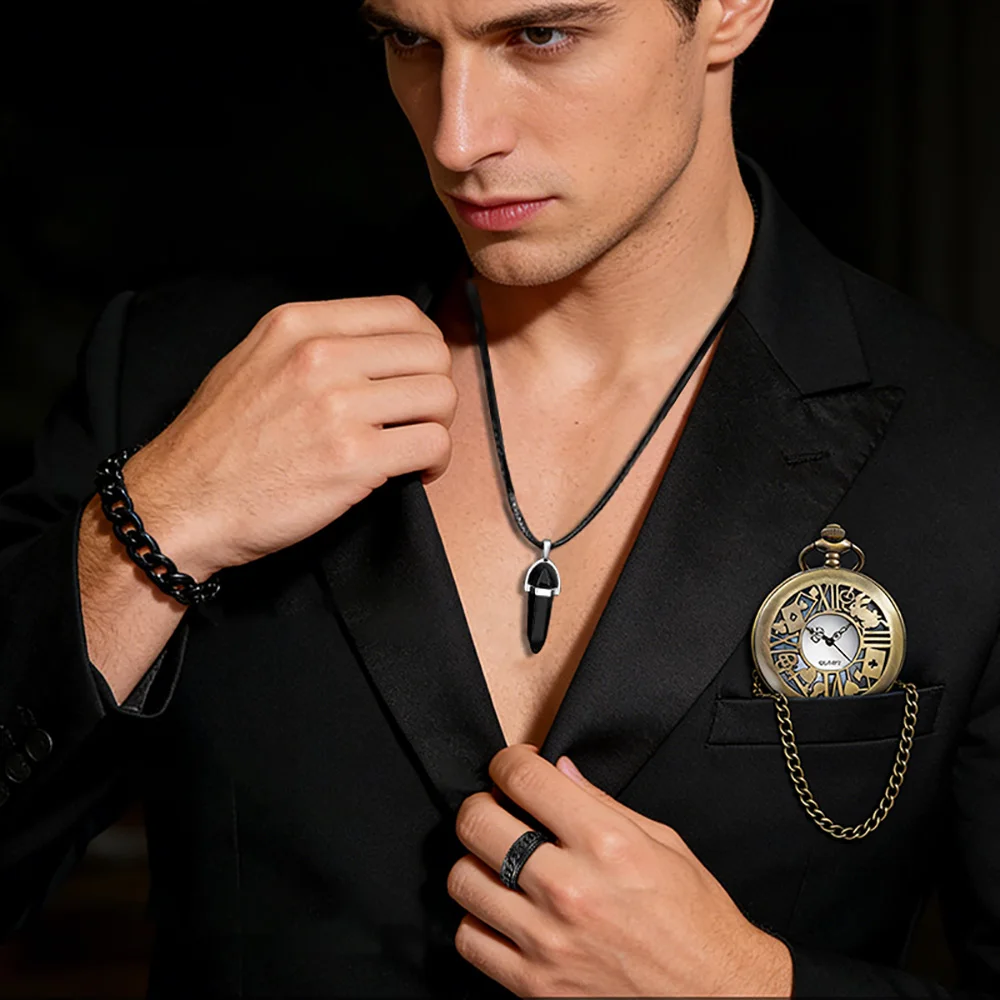 2ピースのカップル向けカジュアル多用途メンズクォーツ腕時計+レトロ懐中時計、クリスマスのギフトに父や彼氏に最適です。 - TopDealBox
