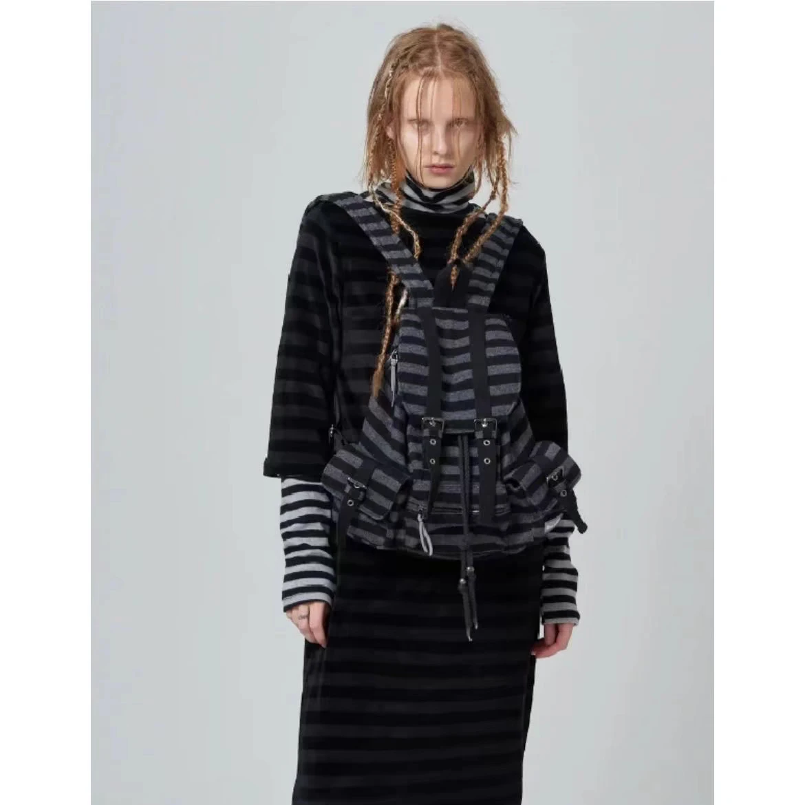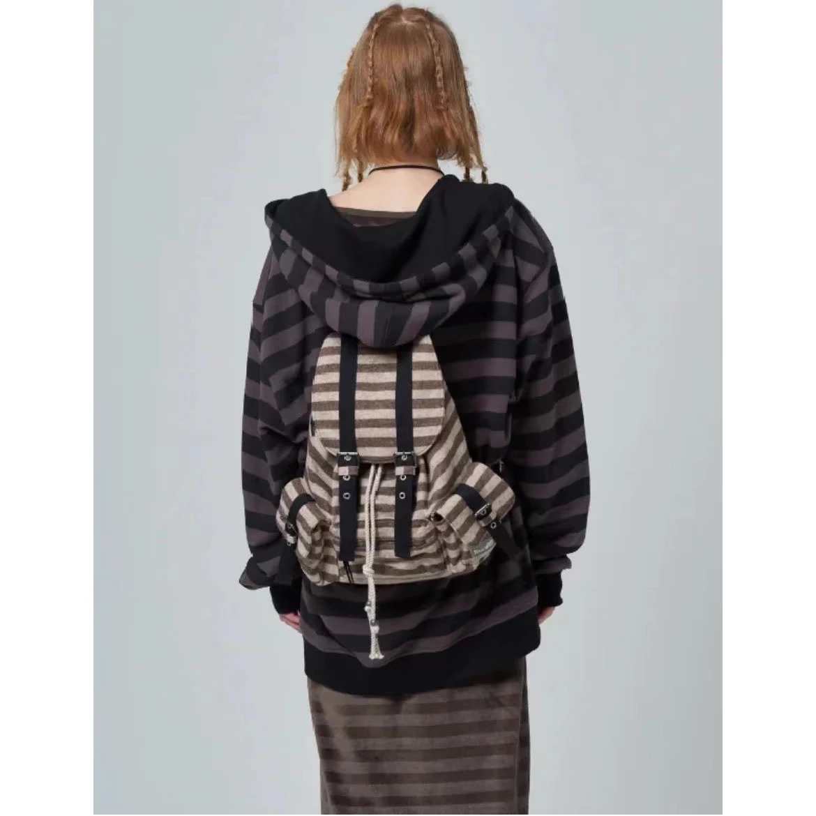 Newjeans カジュアル 大容量 チェック柄 バックパック トレンディ デザイン ハイエンド フラット 代替 ストライプ 機能 レジャー バケット形状 - TopDealBox