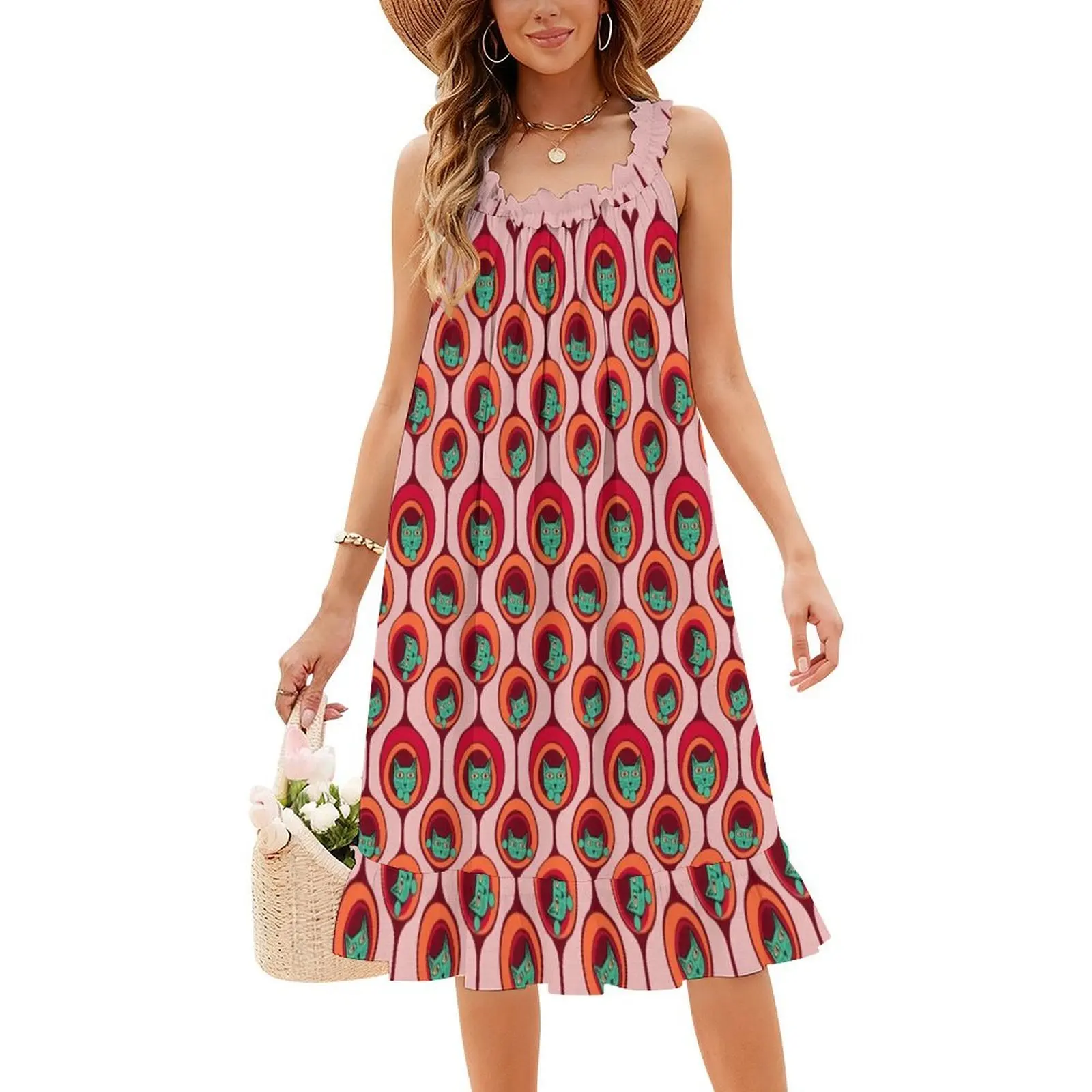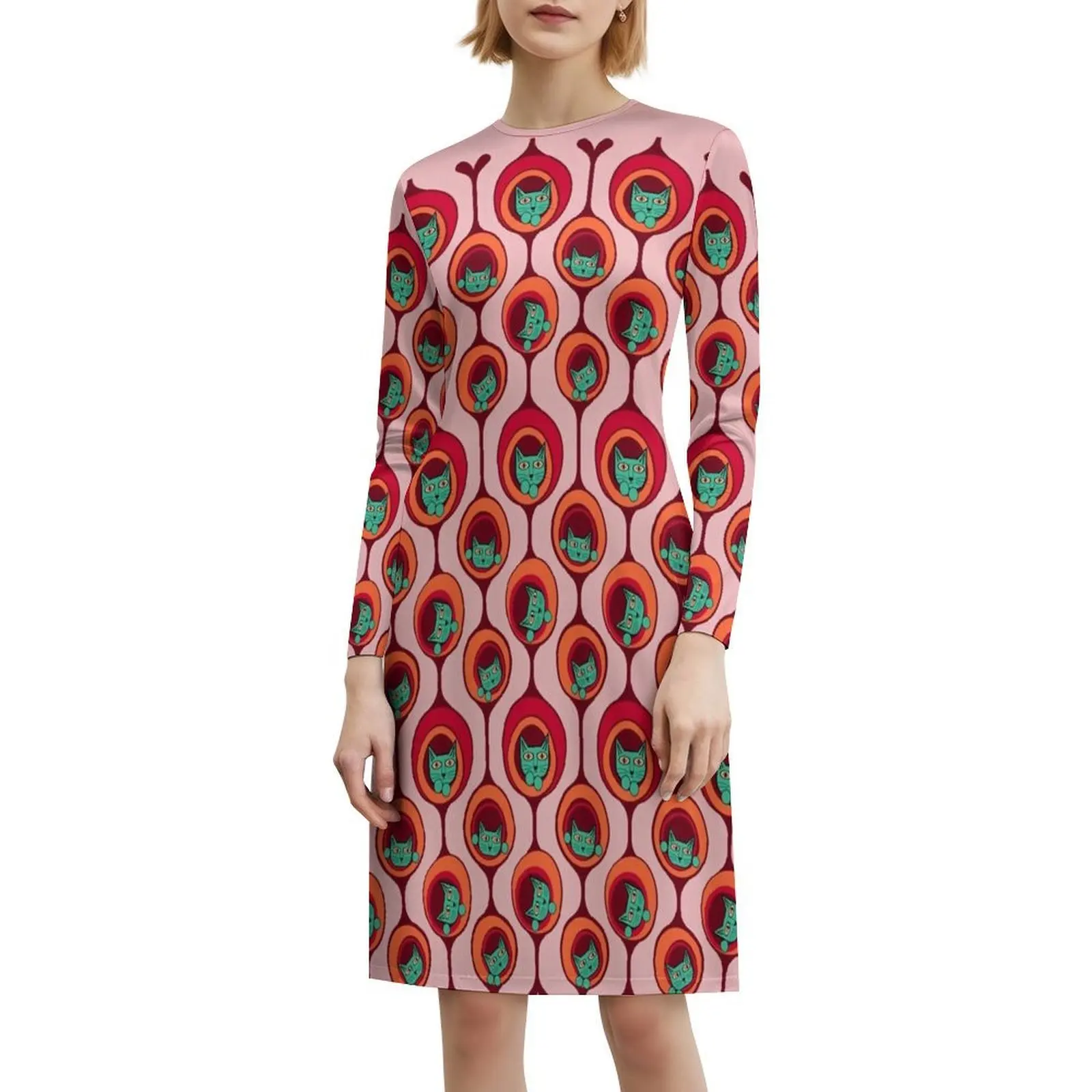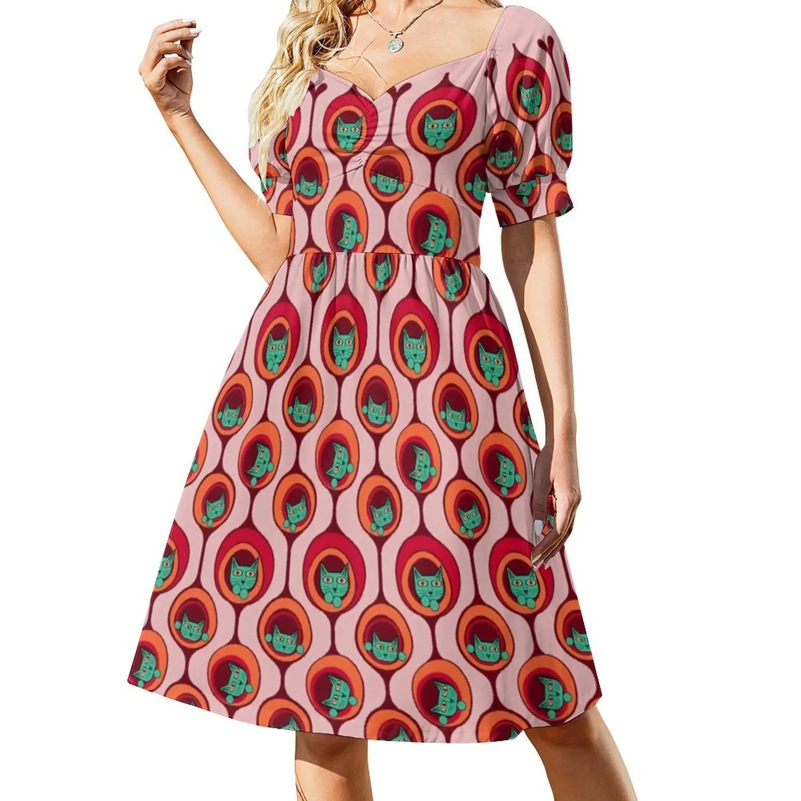 レトロパターン No71A-Kitty Pods レディース エレガント パーティードレス Aラインドレス ショート/ロング/ノースリーブオプション付き ミッドセンチュリーモダン - TopDealBox