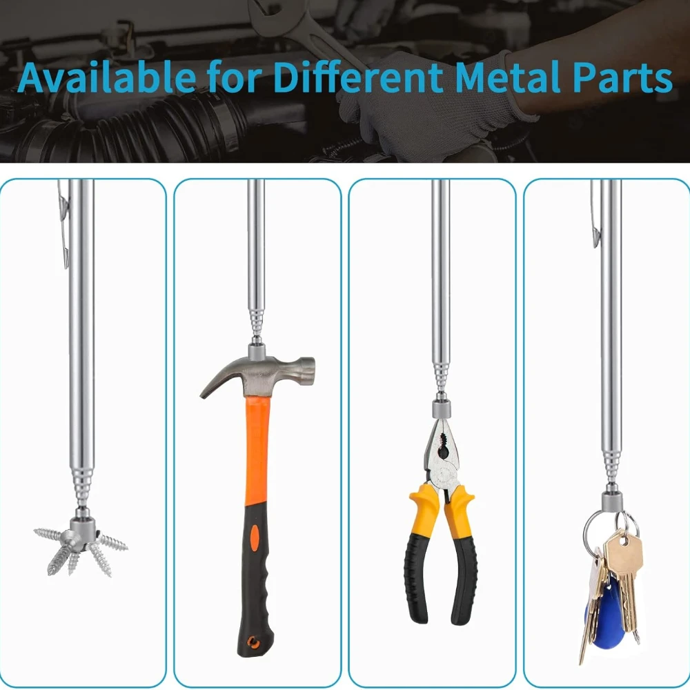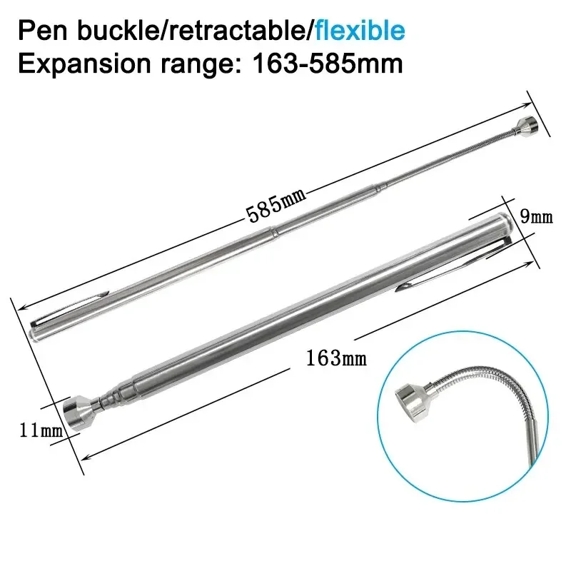 ポータブル回転可能なシルバー磁気ピックアップ、格納式ペンクリップマグネット吸引ロッドハンドツール付き - TopDealBox