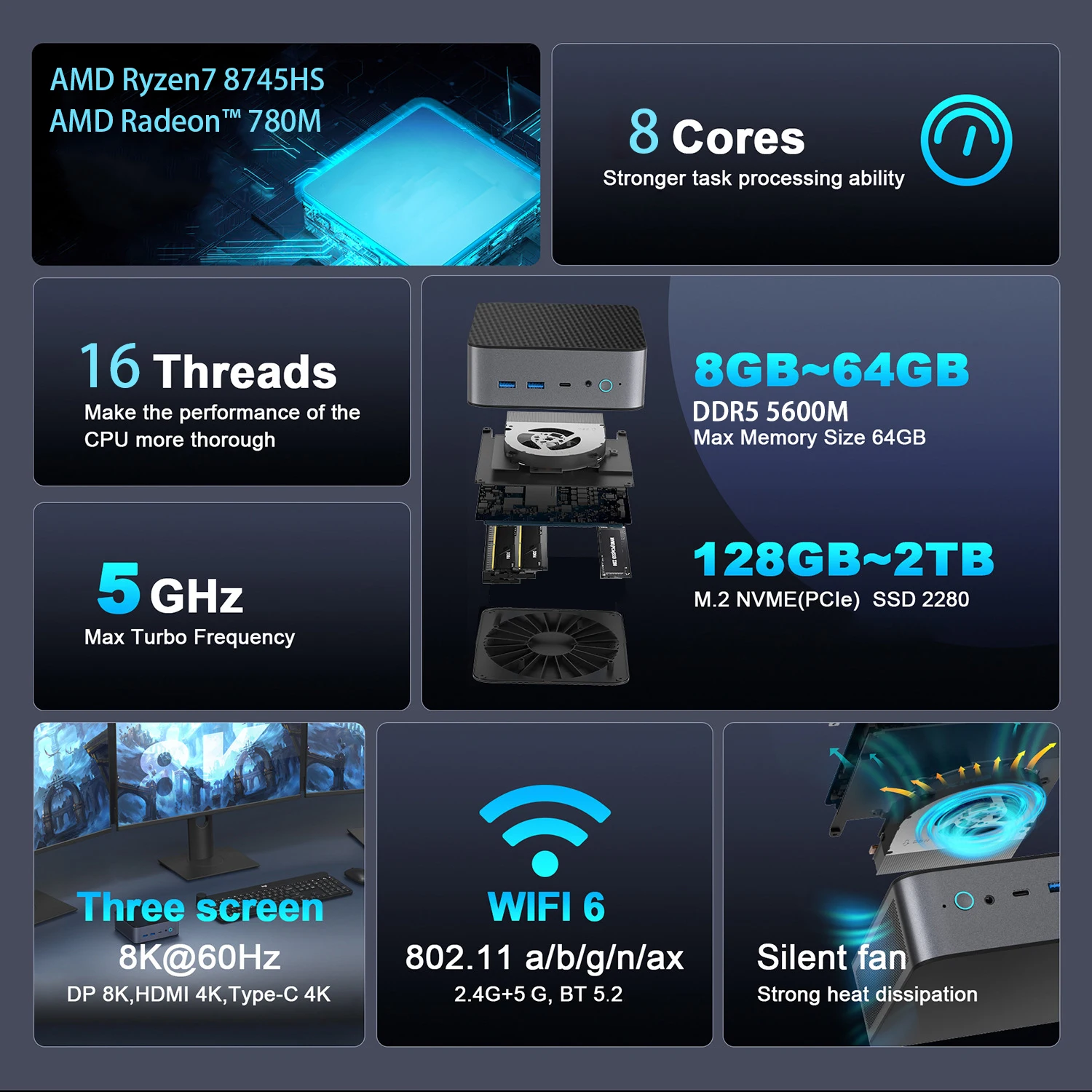 ↑ミニゲーミングPC Windows 11 Pro AMD Ryzen7 8745HS ミニコンピューター 32GB/64GB RAM DDR5 512GB/1TB PCIE M.2 SSD WiFi6 BT5.2 ベアボーン - TopDealBoxGMKtec-G3ミニデスクトップPC,intel,alder Lake,n100,Windows 11 pro,8 GB, 16GB,ddr4,256, 512GB,pcie,m.2 ssd,wifi 6,bt5.2 GMKtec-G3ミニデスクトップPC,intel,alder Lake,n100,Windows 11 pro,8 GB, 16GB,ddr4,256, 512GB,pcie,m.2 ssd,wifi 6,bt5.2 Soyo-Mini PC Intel Alder Lake N100,デスクトップ,Windows 11 Pro, 16GB, DDR4, 512GB,PCie,M.2,SSD,wifi 5,bt5.0