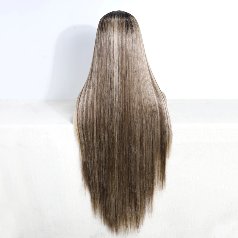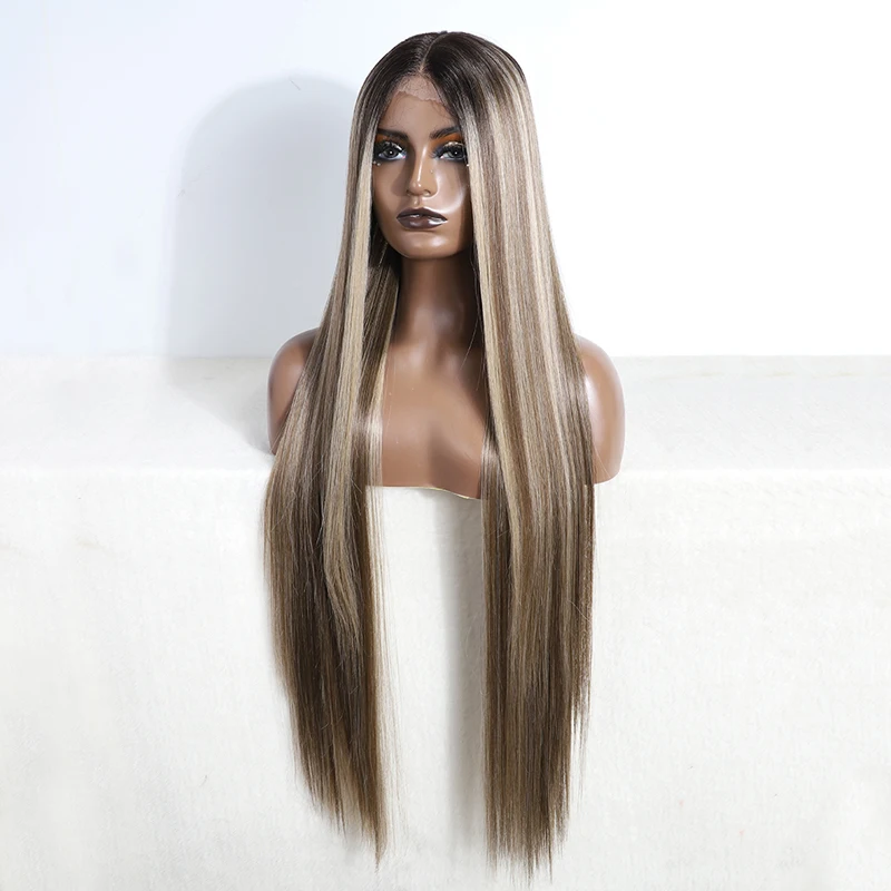 女性用合成レースフロントウィッグ,ロングストレートパーツ,ブロンドブラウン,オンブルウィッグ,36インチ - TopDealBox