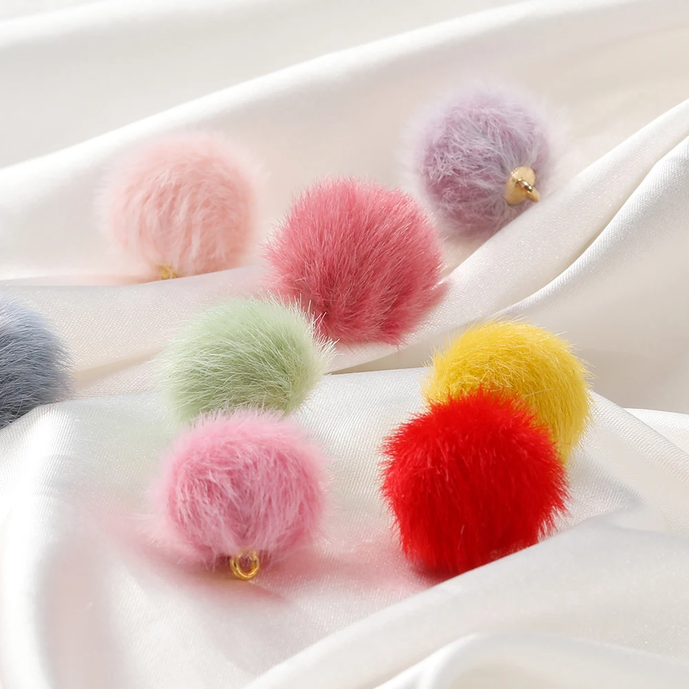 毛皮で覆われたぬいぐるみのボールチャーム,pompomビーズ,ペンダント,日曜大工用,バッグ,ジュエリー作り用品,17mm, 10個 - TopDealBox
