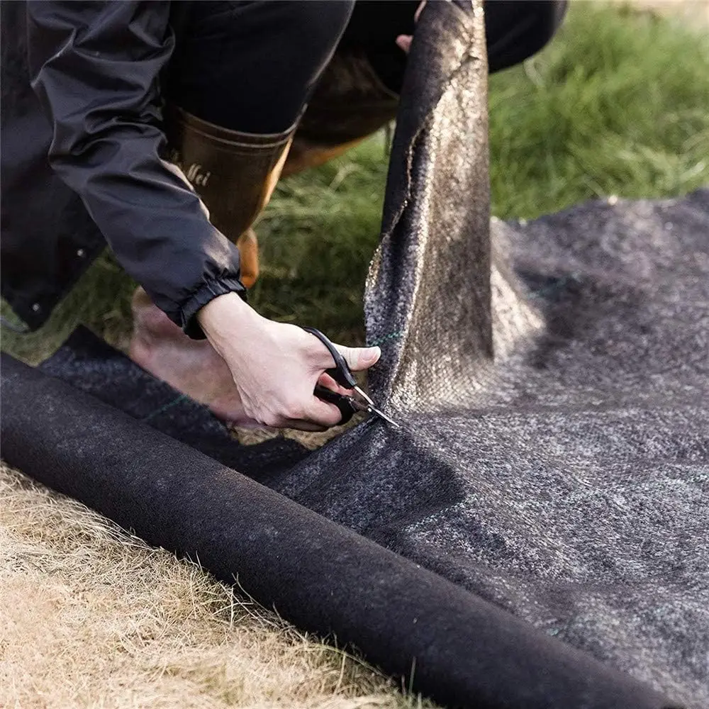 黒色の雑草防止シート、高級生地、頑丈な織り地の地面用布、優れた通気性、雑草対策、便利なデザイン
