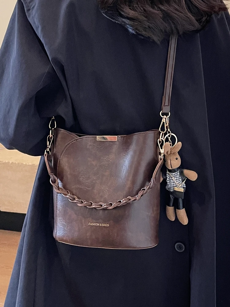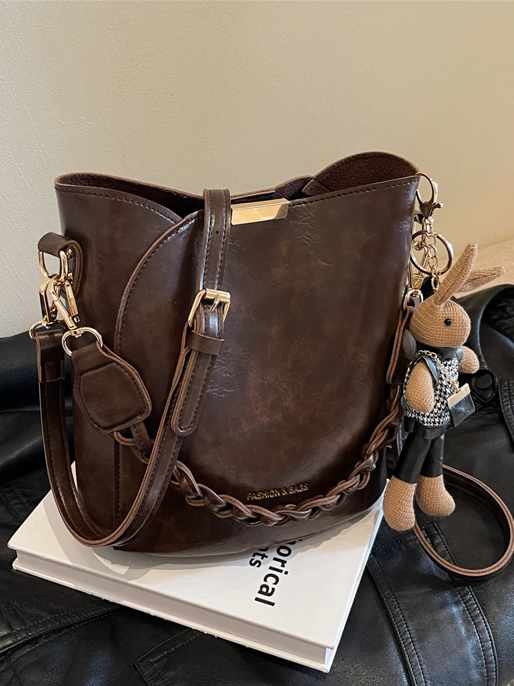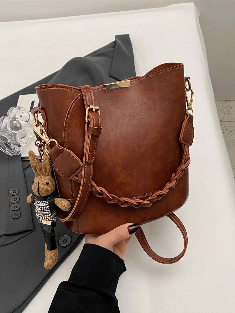 トレンディなバケットバッグクロスボディバスケット織りハンドバッグ多用途小型カジュアルスタイルピュアカラー PU 素材レディースバッグ - TopDealBox