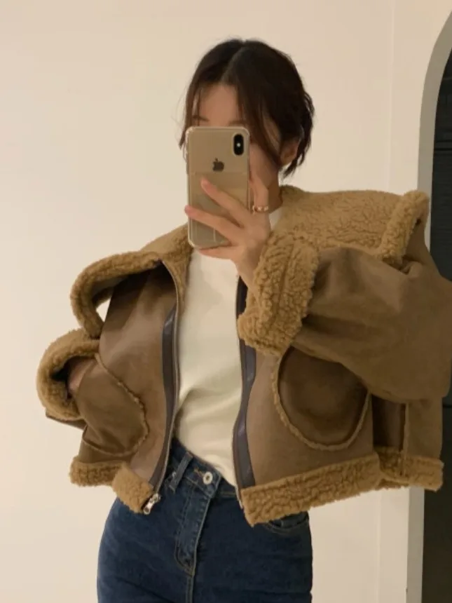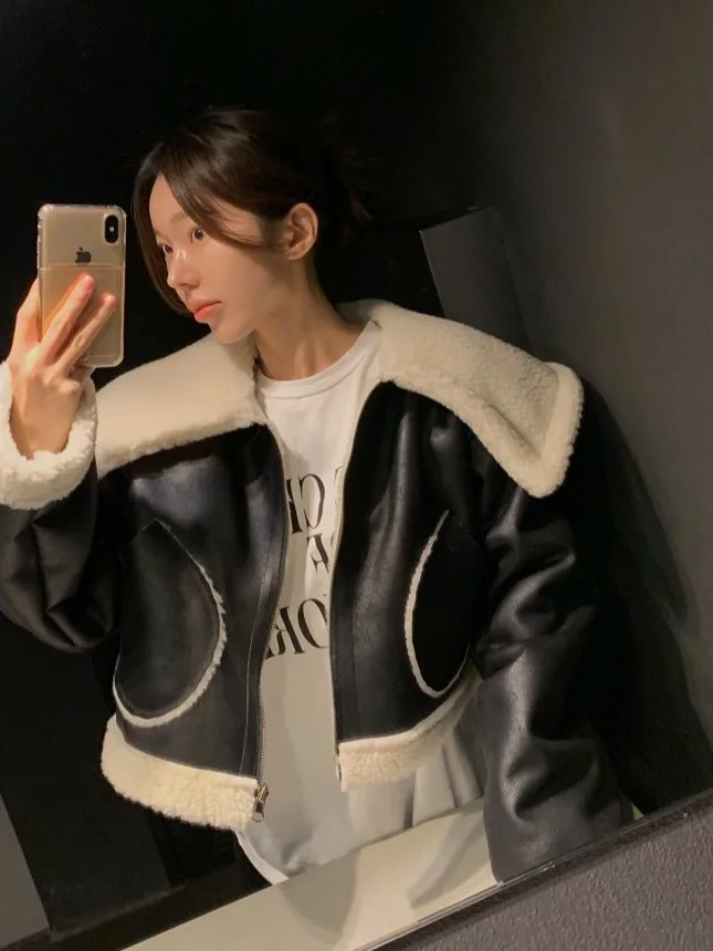 ♡Quick viewシックなショート丈レディースレザーベルベットジャケット、ルーズフィット、秋冬、シンプルで多用途、スリムデザイン、ユニークスタイル、トップスシャツ2260 JPYHot★★★★★1.0