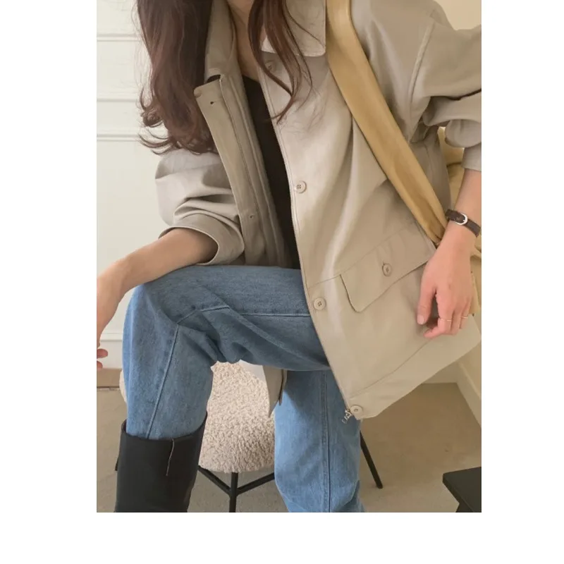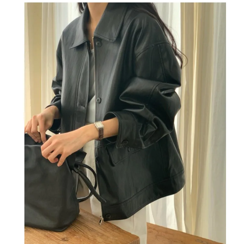 ♡Quick viewシックなヴィンテージレディースレザージャケット、ゆったりとしたスリムフィット、シングルボタン、高級感のある鹿革ベルベットスーツトップ、通勤スタイル2976 JPYHot★★★★★4.3