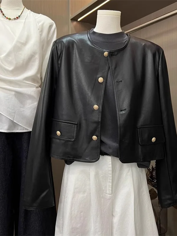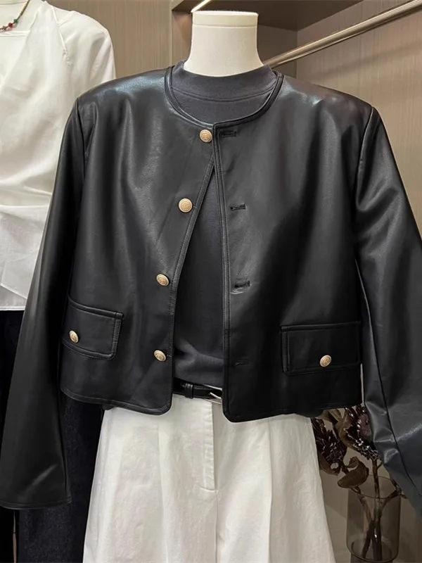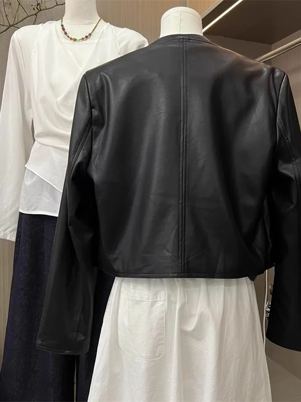 黒PUレザージャケット レディース ショートスタイル 2025年春新作 ルーズフィット ファッションブランド バイクウェア ストリートスタイルジャケット - TopDealBox