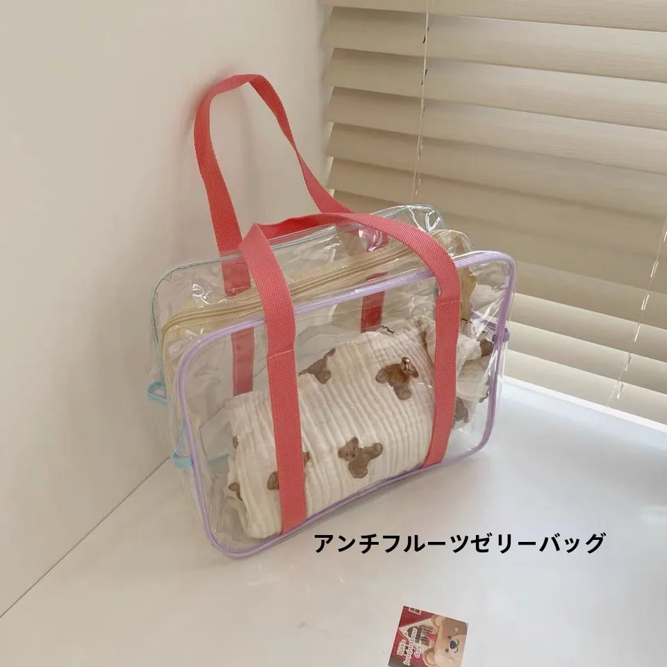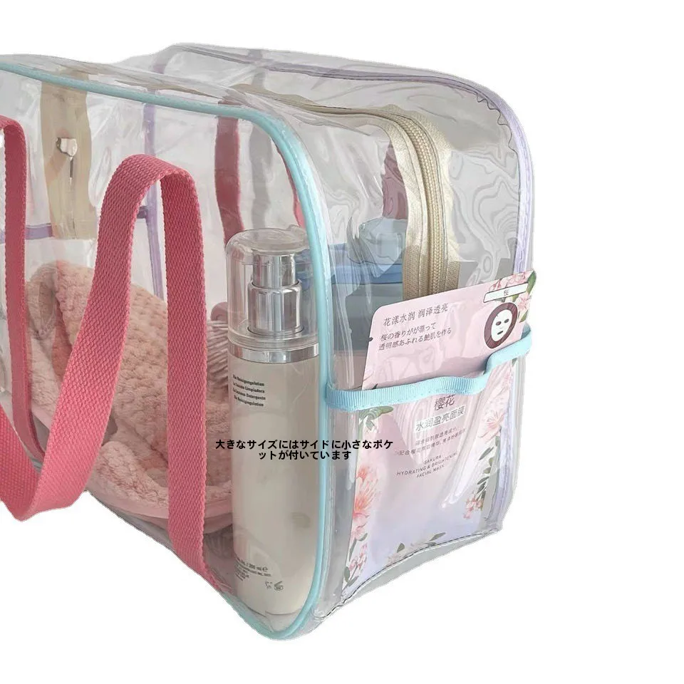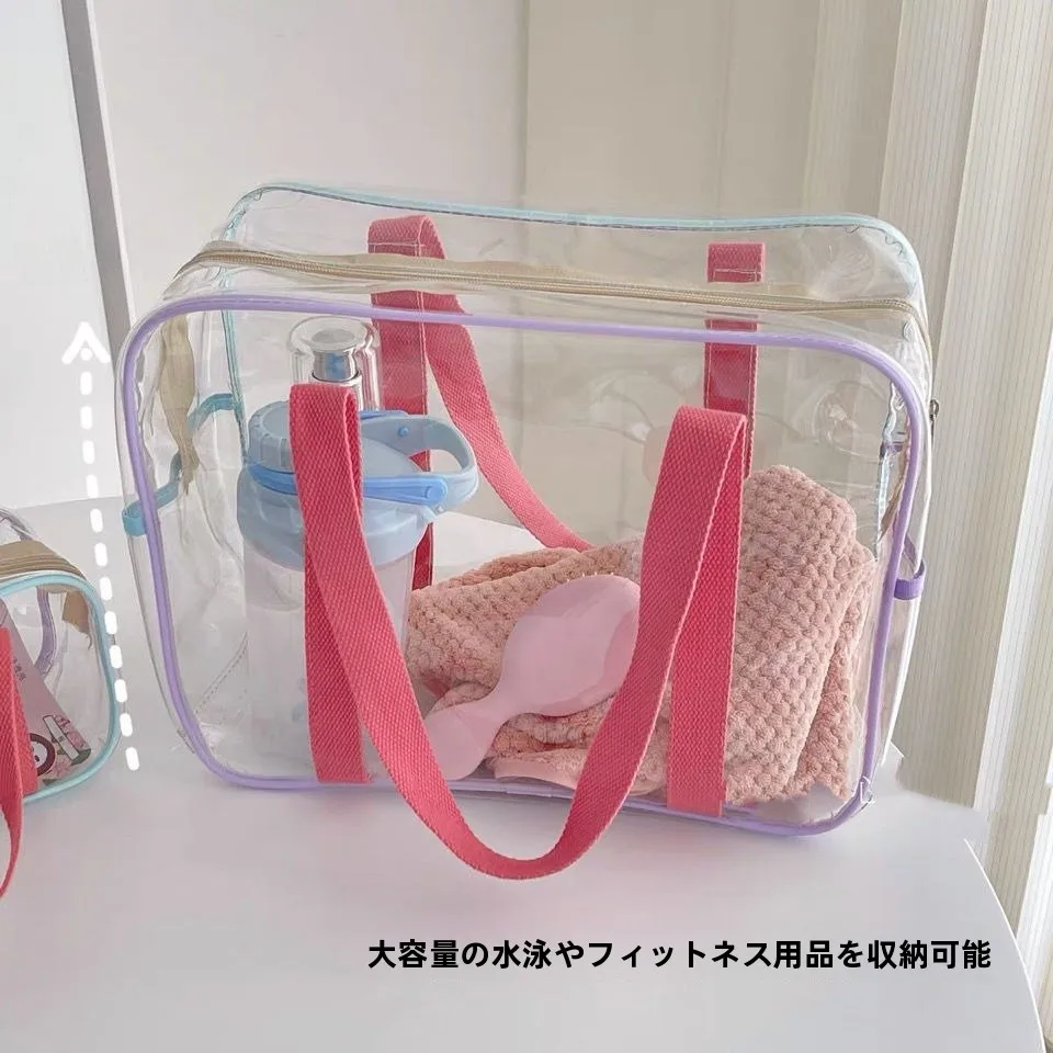 マカロン大容量 PVC 水泳防水ビーチバッグ収納バッグトイレタリーハンドバッグ透明耐久性のあるファミリーオーガナイザー - TopDealBox