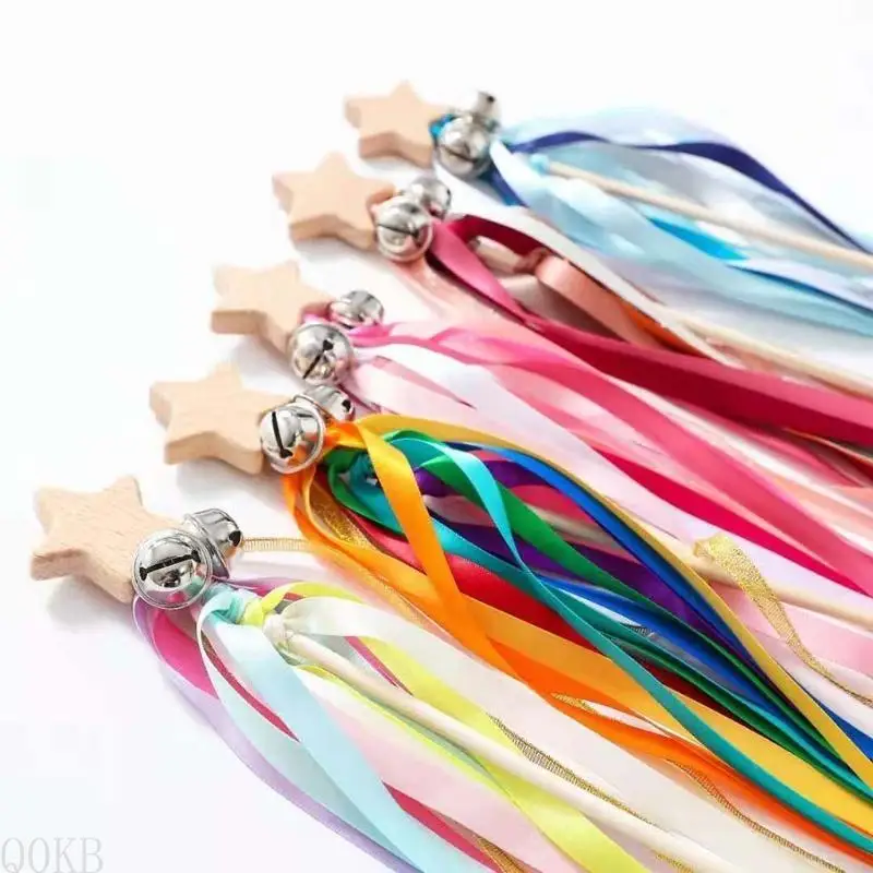 Q0kb学習木製レインボーリボンラトルハンドカイトおもちゃベビー感覚シャワーギフト - TopDealBox
