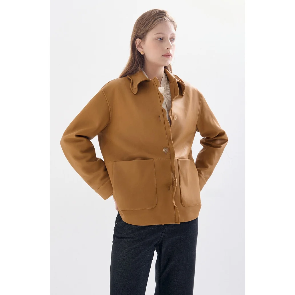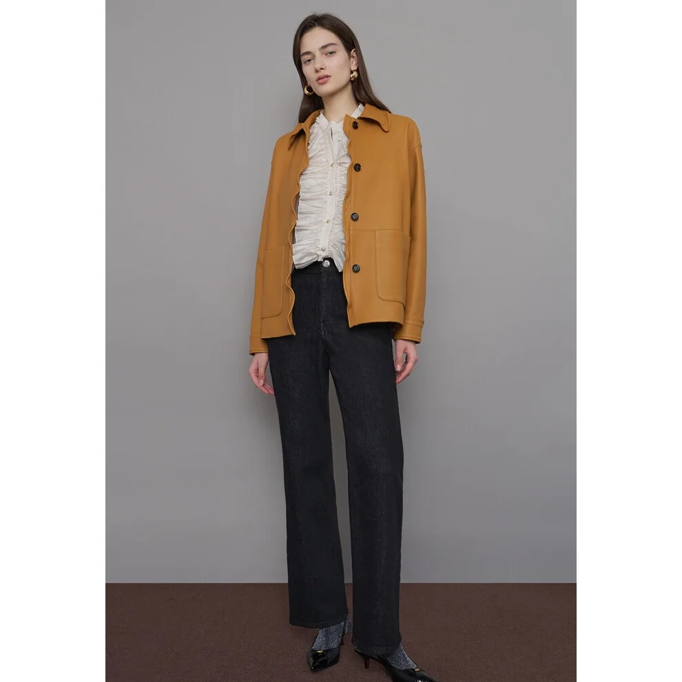 QPP 通勤スタイルフェイクレザージャケットフリル襟スリミングデザインレディースファッションシングルピース冬長袖コート - TopDealBox