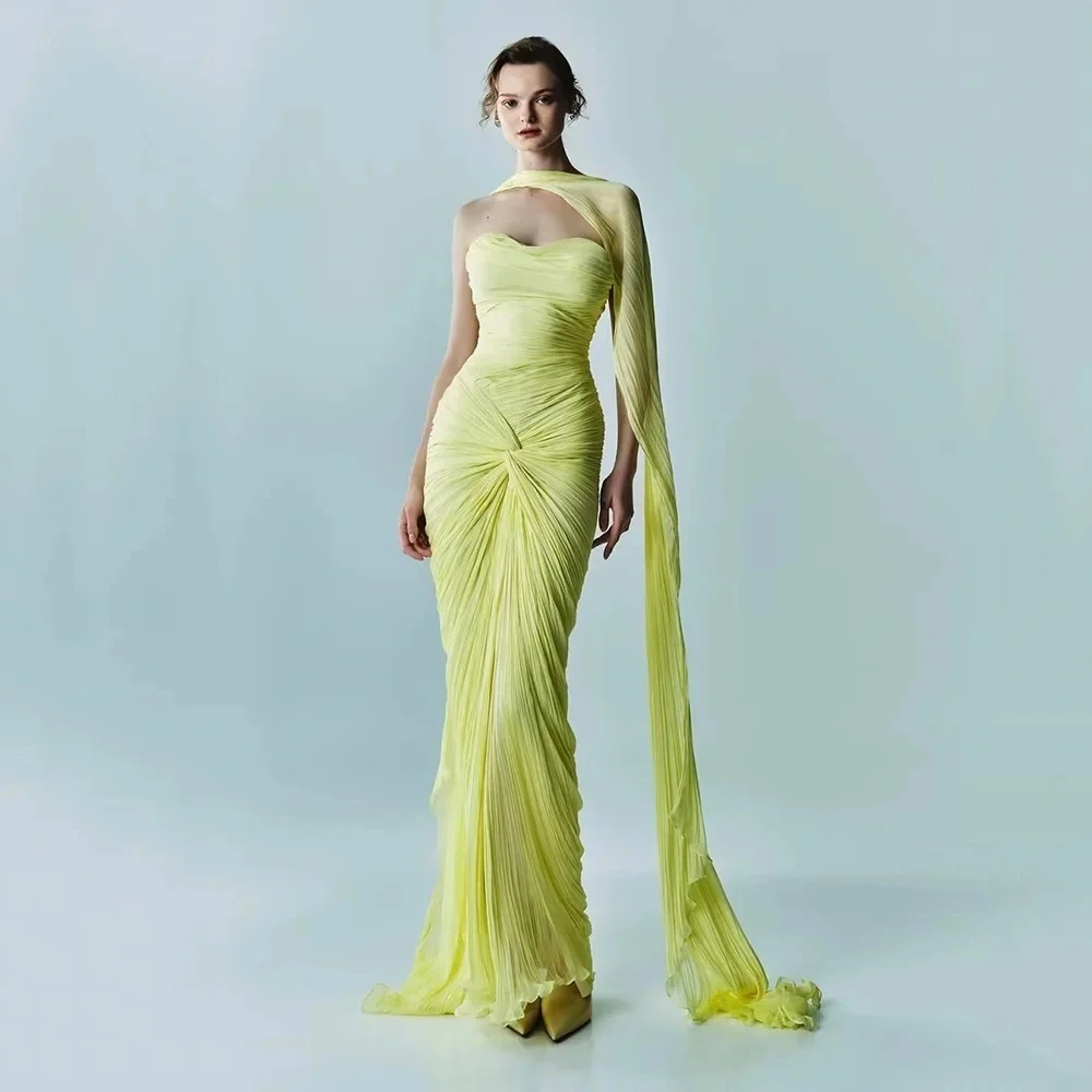 ♡Quick viewFlechazo-女性用の黄色のチュールイブニングドレス,スクープネック,長袖,絶妙なビーズ,弓付きの人魚の床の長さ,パーソナライズされたドレス19330 JPYHot★★★★★★4.9