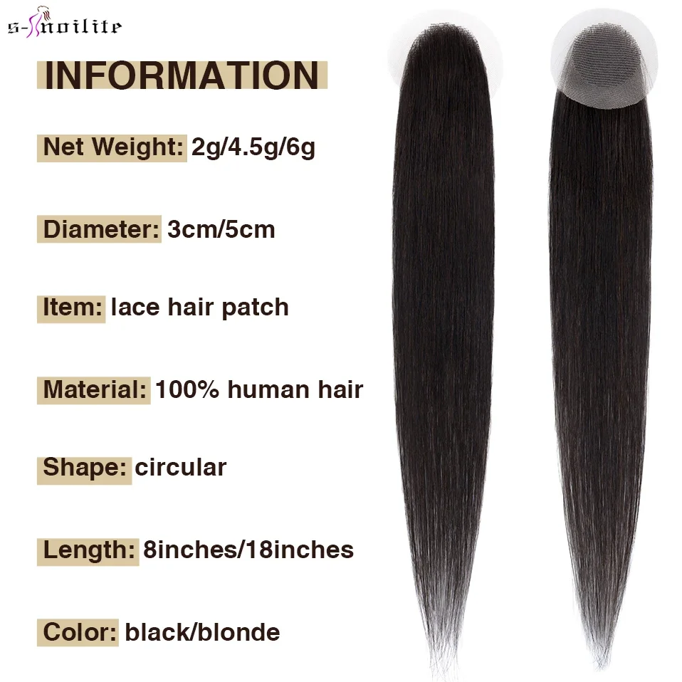 S-noilite 8 インチレースヘアパッチヘアトッパーハンドシングルノットナチュラル人毛交換目に見えない薄いヘアピースエクステンション - TopDealBox