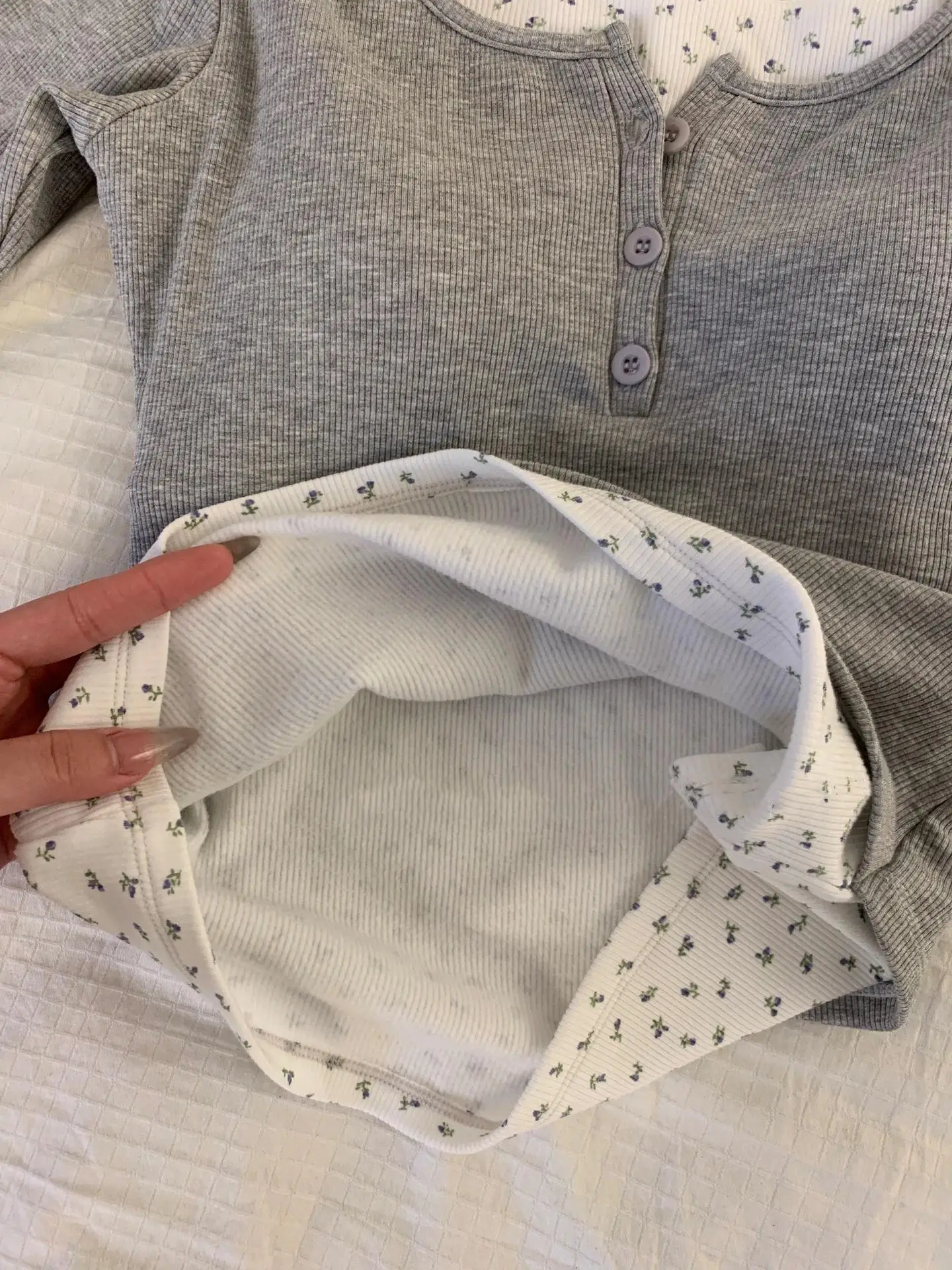 レトロ花柄パッチワーク長袖 Tシャツ女性の春の純粋な欲望カジュアル怠惰なインナーウェアベースシャツトップアンサンブル - TopDealBox