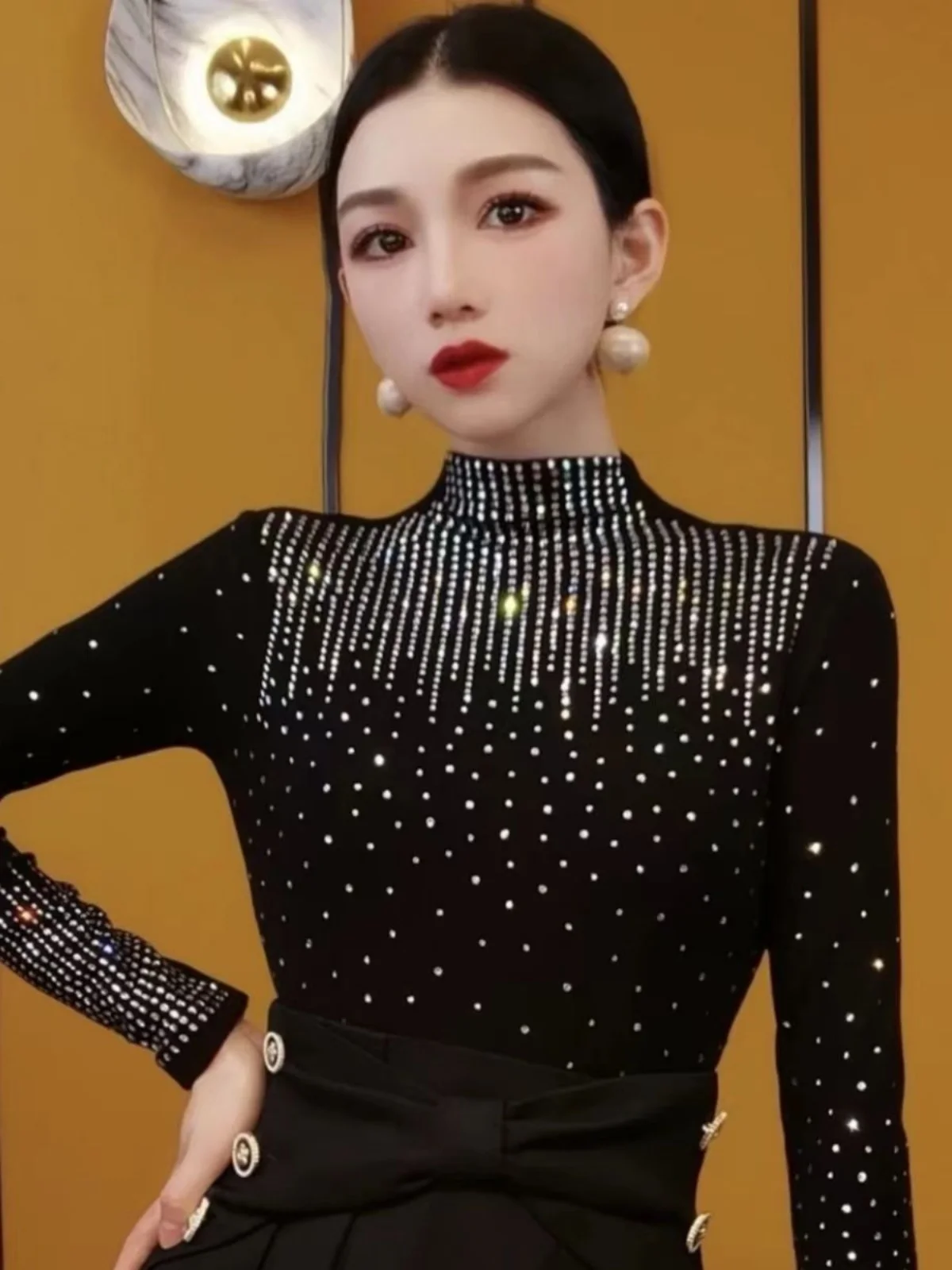肥厚フリース長袖ハーフハイカラーベースシャツ女性の秋冬ファッションダイヤモンドステッチママの衣装韓国スタイルスリムフィット Tシャツ - TopDealBox
