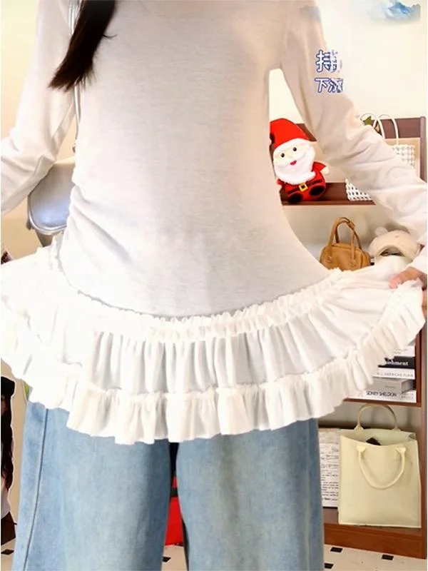 バレエスタイルフリル裾長袖 Tシャツ女性のファッションスリムフィットベースレイヤーシャツインナーウェアトップ春シーズン用 - TopDealBox