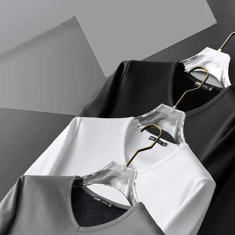 メンズぬいぐるみサーマル長袖 Tシャツボトリングシャツラウンドネックシャツファッションプラスベルベットパッド入り Tシャツ - TopDealBox