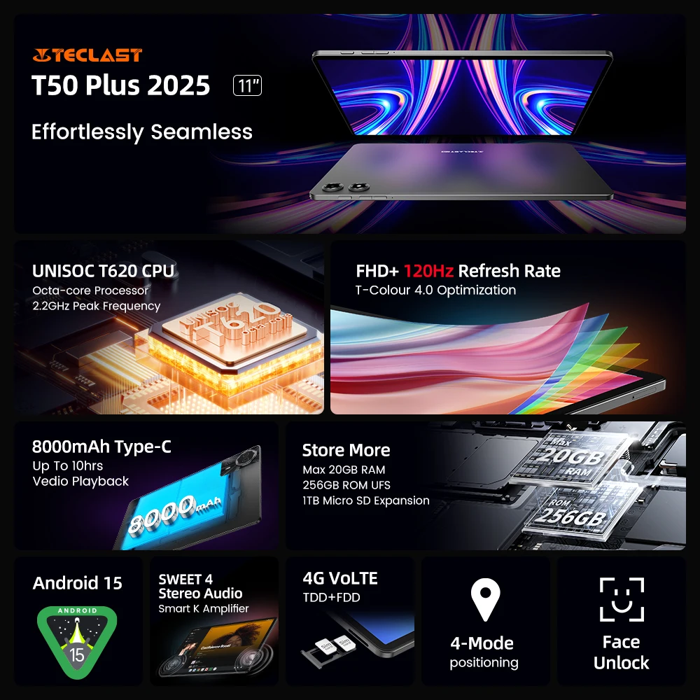 ♡Quick viewTeclast T50Plus 11インチ 2K 90Hz 高リフレッシュレート Android 15 タブレット 6GB +256GB UNISOC T620 8000mAhバッテリー 8MP+13MPカメラ 4Gタブレット20530 JPYHot★★★★★★4.8