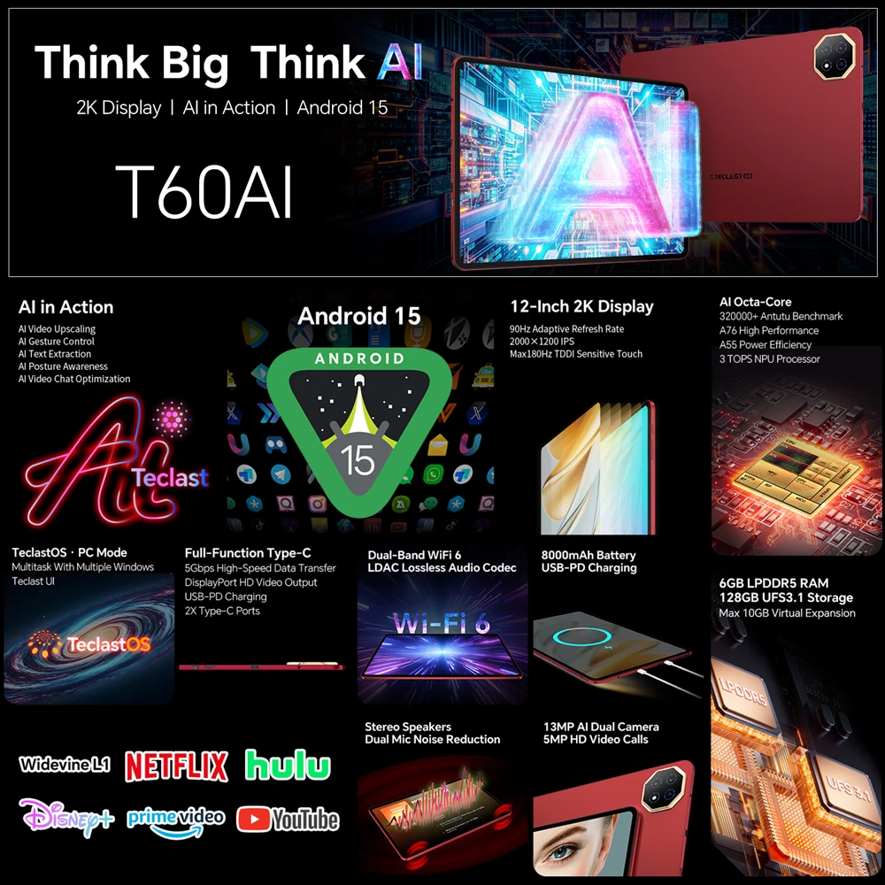 ♡Quick viewTeclast ArtPad Pro 12.7インチ 2.2K UHDディスプレイ 20GB RAM (8+12GB仮想メモリ) 256GB ROM Helio G99 10000mAh 30W急速充電 Android 15 タブレット グローバル版 LTE対応28660 JPYHot★★★★★★4.8