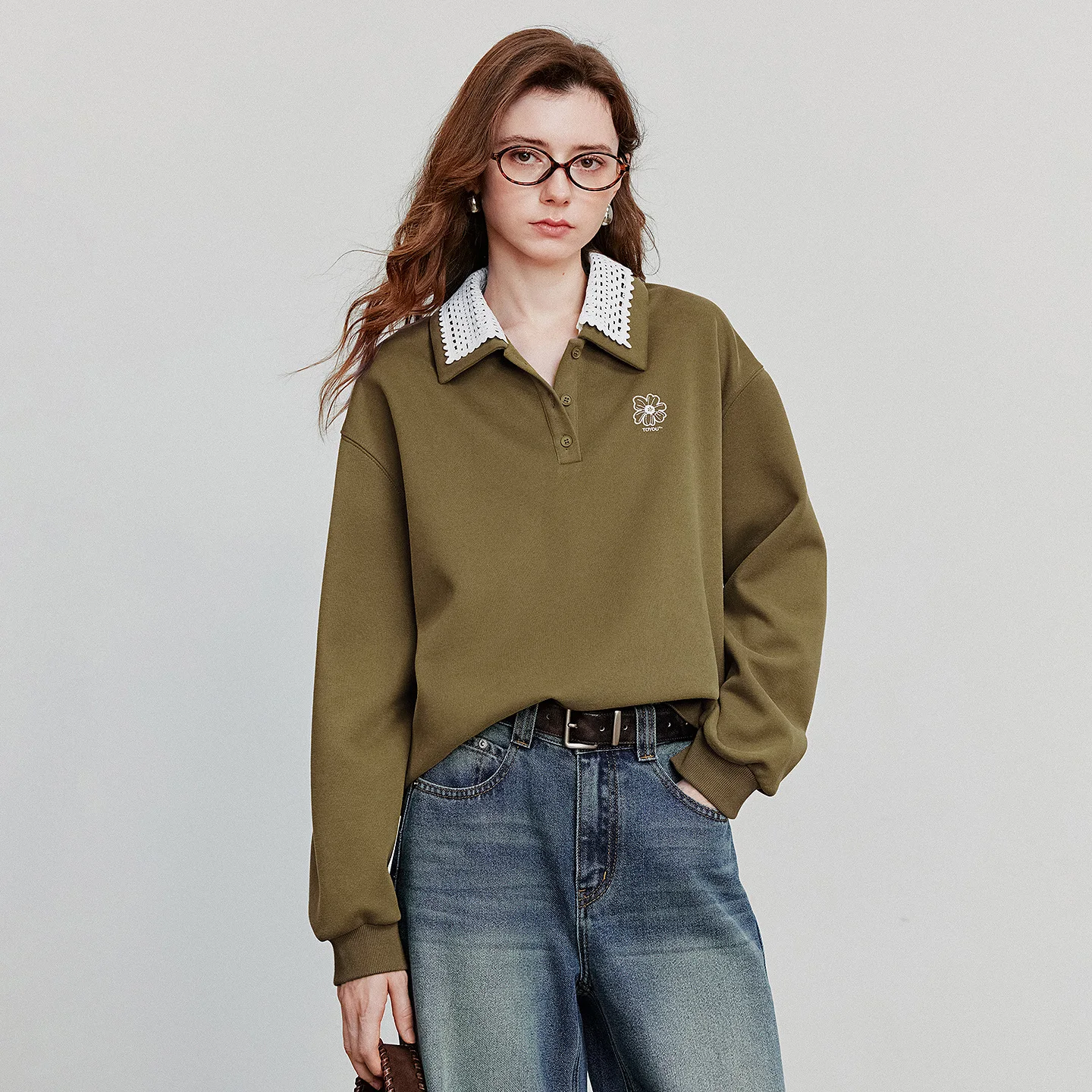 ♡Quick viewTOYOUTH レディース スウェットシャツ 2025年秋新作 デニム 花柄刺繍 フェイクツーピース スプライシング ターン ダウンカラー コットン カジュアル プルオーバー4152 JPYHot★★★★★★5.0