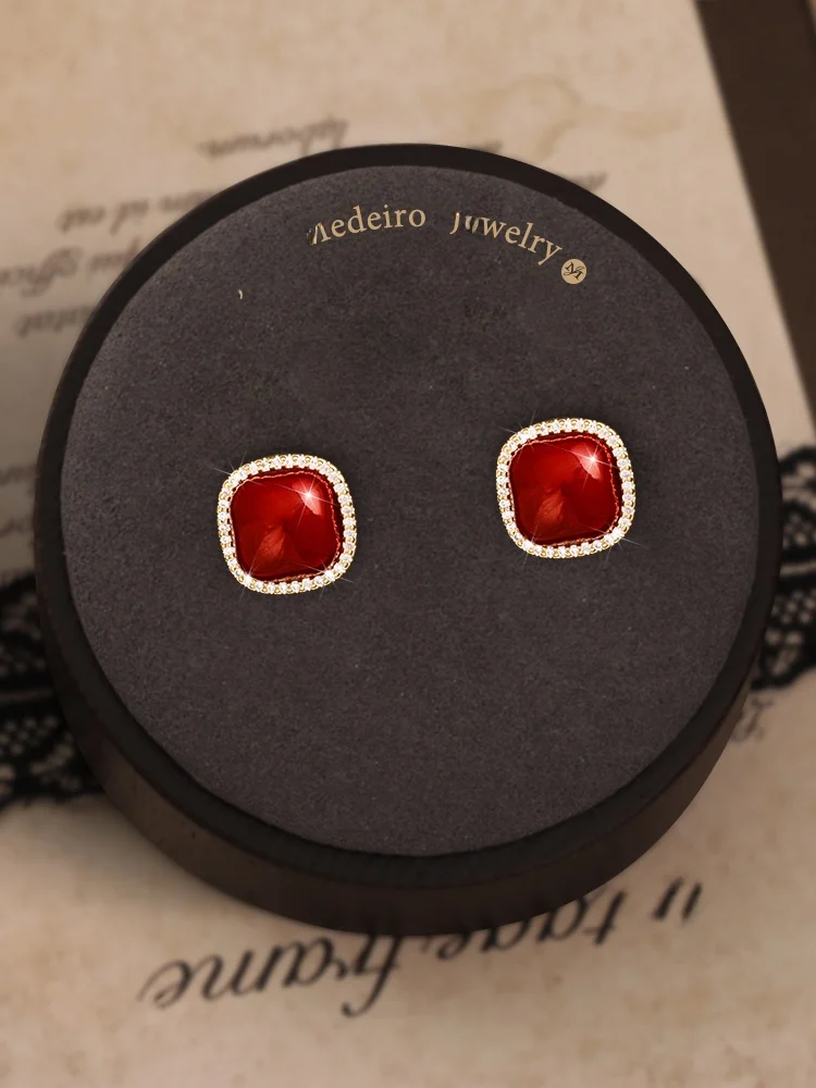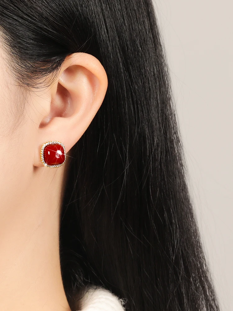 ジョン・メデイロス レッドクリスタルスクエア レディース イヤリング 高級感 ファッション カジュアルスタイル TTER072 2025年夏コレクション - TopDealBox